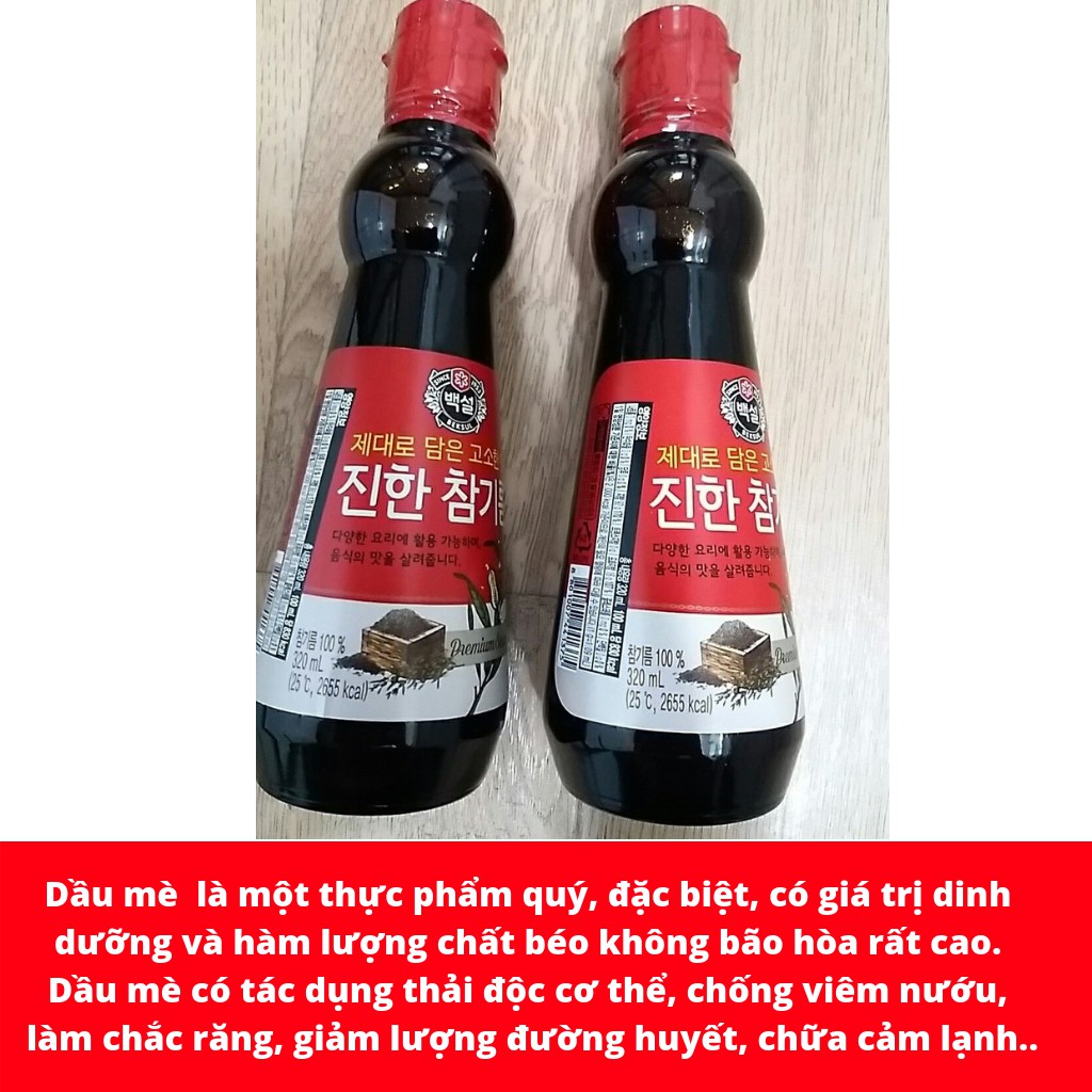 ️DẦU MÈ ĐẬM ĐẶC BEKSUL HÀN QUỐC 320ML - Xuất xứ: Hàn Quốc. - Nhà sản xuất: CJ Cheiljedang Corp. - Nhập khẩu: Cty TNHH CJ Foods Việt Nam. - Trọng lượng : 320ml - Hình thức Đóng gói : Chai - Hạn sử dụng : 12/2020 - Dầu mè đậm đặc Beksul Hàn Quốc 320ml là sản phẩm giàu omega, có tác dụng chống oxy hóa và tốt cho hệ tim mạch. Dầu mè đậm đặc beksul không chứa chất bảo quản độc hại nên tốt cho sức khỏe của người dùng. Bạn có thể sử dụng dầu mè thay cho dầu ăn để chế biến các món ăn hằng ngày. - Thành phần : Dầu mè đậm đặc Beksul Hàn Quốc được sản xuất trên dây chuyền công nghệ hiện đại, đem đến cho gia đình bạn món ăn chất lượng cao nhất. - Các nguyên liệu này được tuyển chọn kỹ lưỡng bởi vậy đã làm nên sản phẩm chất lượng tuyệt hảo, không gây hại cho sức khỏe người dùng, đảm bảo vệ sinh và an toàn cho sức khỏe - Hướng dẫn bảo quản: Bảo quản ở nhiệt độ thường, giữ sản phẩm trong tủ lạnh sau khi mở nắp - Hướng dẫn sử dụng : Dưới đây là một số công dụng của dầu mè: 1. Giàu chất chống oxy hóa 2. Chăm sóc da 3. Giảm huyết áp 4. Giảm cholesterol 5. Chống viêm nướu 6. Giảm lượng đường huyết Hôm nay bạn không cần suy nghĩ mua dầu mè đậm đặc beksul Hàn Quốc 320ml ở đâu chỉ cần nhấn nút ĐẶT HÀNG ngay bên dưới bạn sẽ nhận được sản phẩm chất lượng tuyệt vời nhất, giá tốt nhất. TẤT CẢ HÀNG SHOP GỬI CHO KHÁCH HÀNG ĐỀU LÀ HÀNG MỚI NHẤT ĐỂ ĐẢM BẢO CHẤT LƯỢNG TỐT NHẤT. TUYỂN CỘNG TÁC VIÊN BÁN HÀNG, KHÁCH SỈ VÀ ĐẠI LÍ TOÀN QUỐC. Quý khách hàng inbox shop để được tư vấn và hỗ trợ ------------------------------- #Beksul_Cj, #cj, #dầu, #dầu_beksul, #dầu_mè_110ml, #dầu_mè_beksul_110ml, #dầu_mè_đậm_đặc, #dầu_mè_đậm_đặc_320ml #daume #dầu #dầu_ăn_hàn_quốc #bánh_gạo_hàn_quốc #topokki #tokbokki