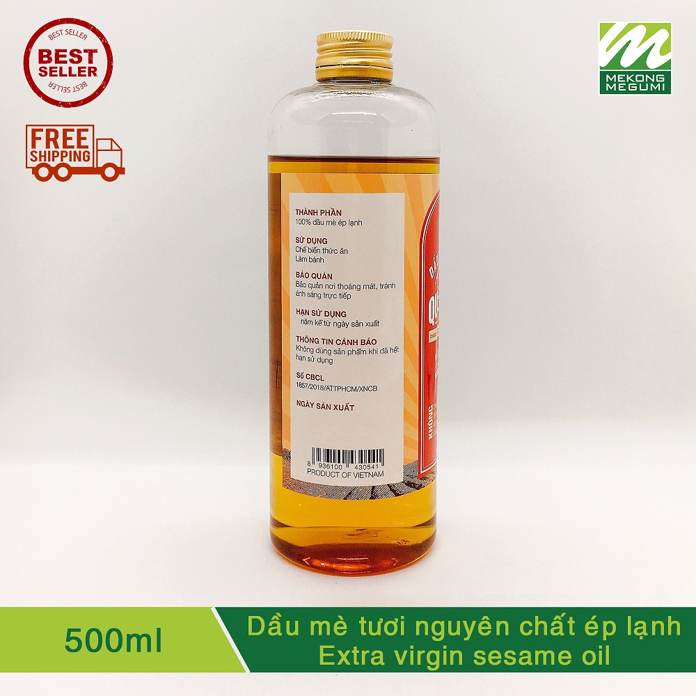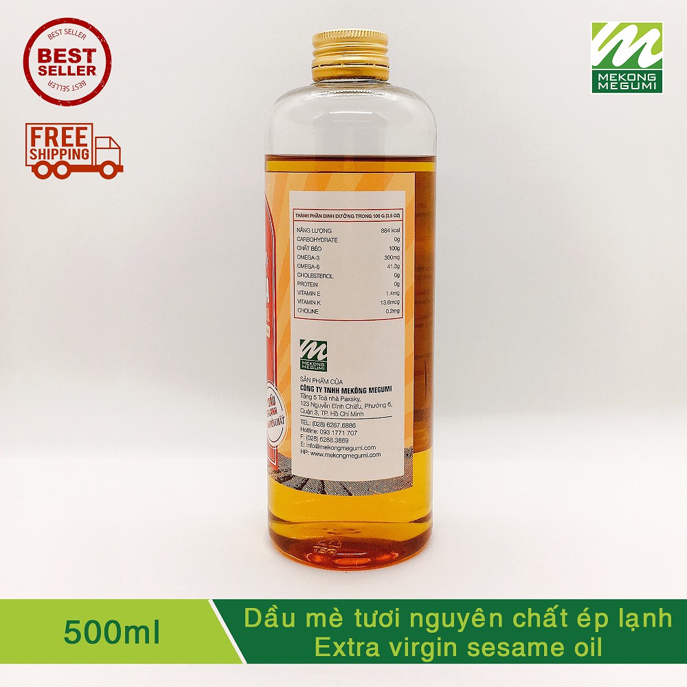 ️- Giới thiệu dầu mè tươi nguyên chất ép lạnh Mekông Megumi Dầu mè hay còn gọi là dầu vừng của Mekông Megumi được trích ly 100% hoàn toàn từ hạt mè đen còn tươi chưa qua rang ở nhiệt độ cao. - Ưu điểm và sự khác biệt của dầu mè tươi Mekông Megumi: + Mùi thơm nhẹ dễ chịu của nguyên liệu mè tươi còn 2 lớp vỏ không biến đổi gen. Không quá thơm như dầu mè tinh luyện được làm từ hạt mè rang trên 200 độ C. + Màu dầu mè thành phẩm là màu nâu cánh dán nhạt. Không phải màu nâu đen, nâu tối như dầu mè đen trên thị trường. (Màu càng sẫm là do hạt mè được rang nhiệt độ càng cao, bị khét). + Không bị lắng cặn hoặc có thể lắng cặn tự nhiên 1 ít, nhưng không ảnh hưởng chất lượng. Độ ẩm thấp trong giới hạn quy định lưu hành của Bộ QL ATTP TPHCM cấp phép. Giúp dầu mè bảo quản lâu hơn, chất lượng ổn định. + Dầu mè nguyên chất thành phẩm sẽ không còn đường và tạp chất. + Dầu mè tươi nguyên chất của Mekông Megumi sẽ giúp bạn dùng được cho cả nấu ăn và làm đẹp. + Được sử dụng công nghệ ép lạnh tuyệt đối, hoàn toàn không sinh nhiệt độ khi ép ra dầu. Đây là phương pháp ép tốt nhất cho dầu đạt chuẩn ép lạnh. + Khi lọc được chất dầu tinh khiết nhất thì bảo quản dầu mới được lâu mà không cần dùng chất bảo quản, cũng như các phụ gia tạo màu, mùi. + Khi sản xuất được dầu mè nguyên chất tinh khiết, chưa qua nhiệt độ thì chất lượng dầu mè sẽ là tốt nhất, giữ được trọn vẹn dinh dưỡng, nguyên tố vi lượng thiết yếu như sắt, kẽm, đặc biệt là vitamin K, E rất dễ biến mất khi chỉ tiếp xúc nhẹ với nhiệt độ. - Thông số sản phẩm dầu mè tươi nguyên chất Calories...............884 Kcal Carbohydrate...............0 g Total Fat...................100 g Omega 3...............300 mg Omega 6.................41.3 g Cholesterol..................0 g Protein.........................0 g Vitamin E...............1.4 mg Vitamin K...........13.6 mcg Choline...................0.2 m Điểm khói..........105 độ C - Cách dùng dầu mè nguyên chất Mekông Megumi: + Trẻ em: bắt đầu ăn dặm, 8 tháng đến 12 tuổi (pha 0,5 - 1 muỗng cà phê/ lần, ngày 2 lần). + Trộn 1 muỗng cà phê (5ml) dầu mè nguyên chất vào thức ăn đã nấu chín trộn đều trước khi ăn. + Trẻ em trên 1 tuổi: tùy vào lượng thức ăn mà dùng dầu sao cho phù hợp. -> Dầu mè đen nguyên chất Mekông Megumi thích hợp với các món xào nhẹ, nấu ở nhiệt độ thấp, đặc biệt giàu chất dinh dưỡng khi sử dụng với các món trộn sống, salad hoặc thêm vào món ăn sau khi tắt bếp. - Cách bảo quản dầu mè tươi nguyên chất Mekông Megumi: + Bảo quản dầu mè ở nhiệt độ thường - nhiệt độ phòng sẽ dùng được trong 2 năm. + Quý khách có thể bảo quản dầu trong ngăn mát tủ lạnh để tăng thời hạn sử dụng lâu hơn (~3 năm) nếu thích. + Tránh tiếp xúc trực tiếp với ánh nắng mặt trời và những nơi có nhiệt độ cao hoặc có khả năng sinh nhiệt độ cao.