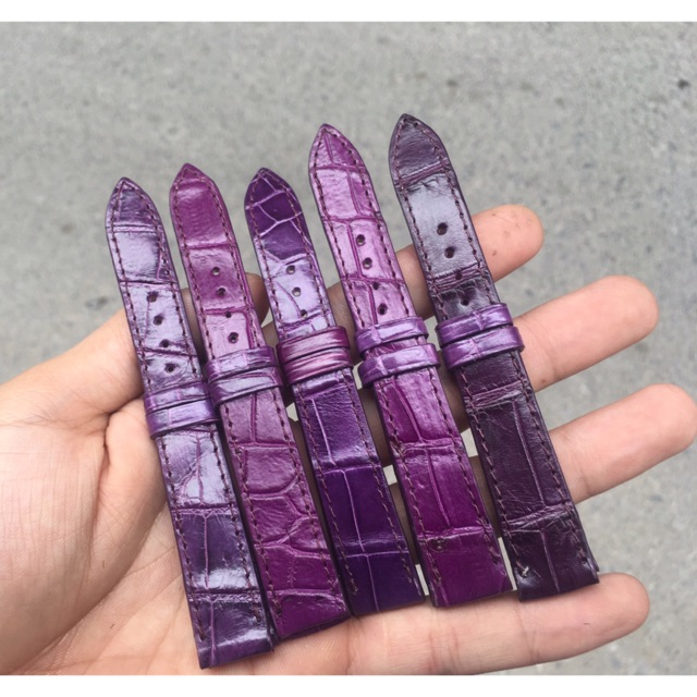 Dây đồng hồ da cá sấu cao cấp màu tím