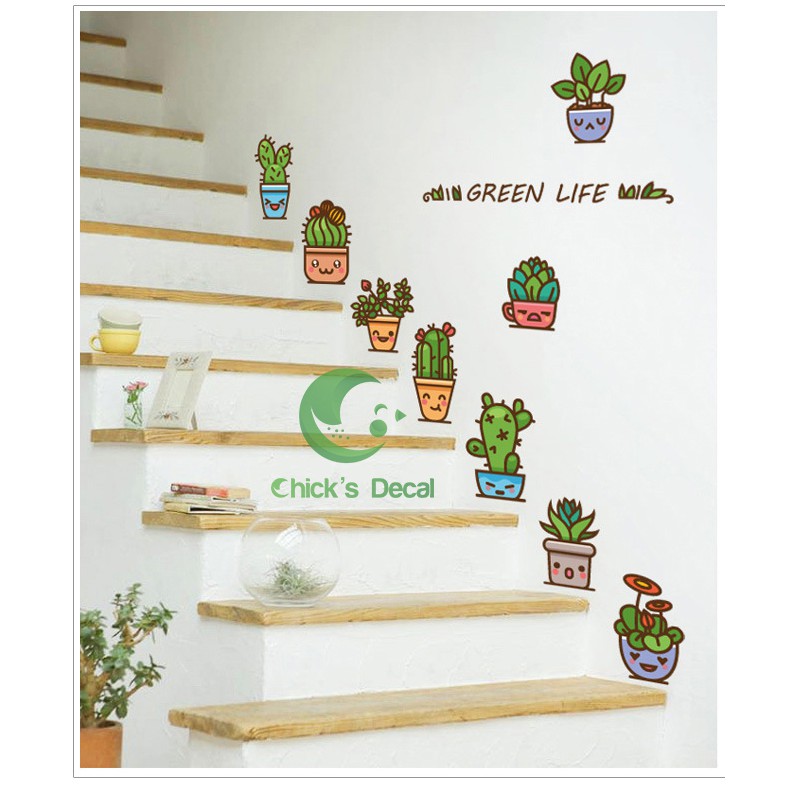 Decal dán tường 9 chậu xương rồng ngộ nghĩnh