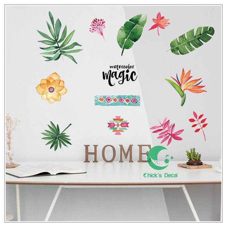 Decal dán tường Hoa lá tươi mát