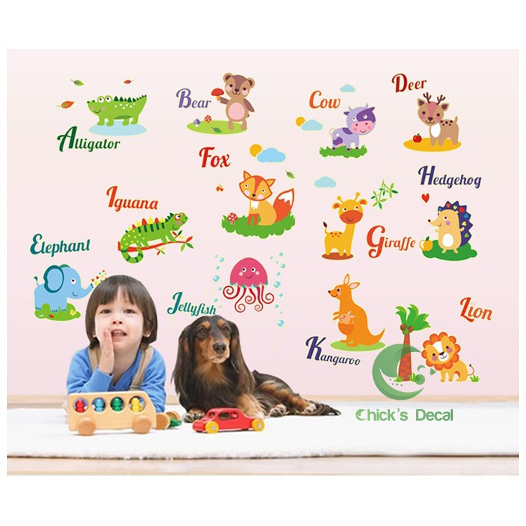 Decal dán tường học Tiếng anh cho bé (Động vật phát sáng)