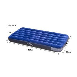 ️■ Hãng sản xuất: INTEX ■ Đệm hơi Intex 68757 có kích thước dài: 191cm, rộng 99cm, dày 22cm, nặng 2,72kg, chịu nặng 100kg, màu xanh. ■ Mặt đệm dạng vải nỉ không thấm nước, không bị xô khi nằm, luôn thông thoáng không đổ mồ hôi tạo cảm giác thoải mái cho bạn. ■ Phụ kiện đi kèm: miếng vá đi kèm sản phẩm.