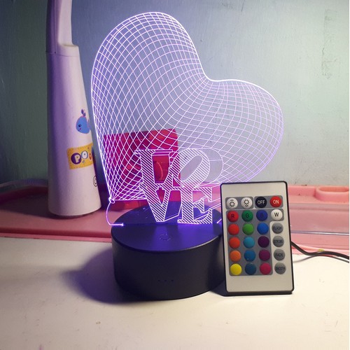️Món quà tặng độc đáo dễ thươngTrang trí không gian phòng đầy ảo diệu và lãng mạnHình ảnh ngỗ nghĩnh dễ thương chắc chắn sẽ làm các bạn nữ chết mêRẤT NHIỀU HÌNH ĐẸP NGỘ NGHĨNH BẠN CÓ THẾ GHÉ VÀO SHOP ĐỂ CHỌN LỰA NHÉ Giới thiệu sản phẩm Đèn ngủ 3d Giấc ngủ rất quan trọng đối với sức khỏe của chúng ta, bất kể vì nguyên nhân gì, nếu thừơng xuyên thiếu ngủ đều sẽ ảnh hưởng đến sức khỏe, công tác và an toàn. Nhịp sống căng thẳng có thể khiến chúng ta ngủ không ngon giấc, hoặc làm việc trong thời gian quá dài, hay vui chơi quá mệt mỏi đều ảnh hưởng đến chất lượng của giấc ngủ. Có một số bệnh và nguyên nhân tinh thần cũng ảnh hưởng đến giấc ngủ. Vì vậy, phải chú trọng giấc ngủ, bằng không chúng ta phải trả một giá đắt. Vì giấc ngủ là rất quan trọng đối với sức khỏe của con người. Việc lựa chọn 1 chiếc đèn ngủ cũng góp 1 phần không nhỏ với bạn. Một chiếc đèn ngủ có ánh sáng vừa phải sẽ khiến bạn dễ chịu và ngủ ngon hơn. Không những vậy, chiếc đen ngủ 3D kỳ diệu này còn khiến không gian phòng ngủ của bạn trở nên sinh động hơn, tạo cảm giác thư giãn, thoải mái hơn. Sản phẩm: Đèn ngủ 3D Kích thước hộp: 24,5x17x5cm Kích thước đèn : Độ cao 21.5cm đường kính đế đèn 8.5cm dây cáp nguồn dài 85 cm Chất liệu: Mica cao cấp Nguồn: 5V có thể sử dụng bằng cốc sạc ĐTDĐ Công suất 5V, hoặc dùng pin bộ đèn gồm ; 1 đế đèn + 1 hình 3 D + 1 dây sạc + 1 cốc sạc + 1 điều kiển + hộp Mô tả : Hình ảnh 3D được khắc trên chất liệu arylic tạo độ bền cho sản phẩm. Được thiết kế với 6 đèn led thay đổi 16 màu sắc (thời gian sử dụng lên 100.000 giờ ) bên dưới phản chiếu lên hình ảnh 3D phía trên tạo ra một hình ảnh không gian ba chiều cho vật chiếu sáng. Đèn có nhiều màu sắc phát sáng ngẫu nhiên hoặc bạn có thể chọn cho đèn 1 màu bằng phím cảm ứng dưới đế đèn Ánh sáng dịu của đèn led giúp bạn chìm vào một giấc ngủ tốt hơn sau một ngày làm việc mệt mỏi.