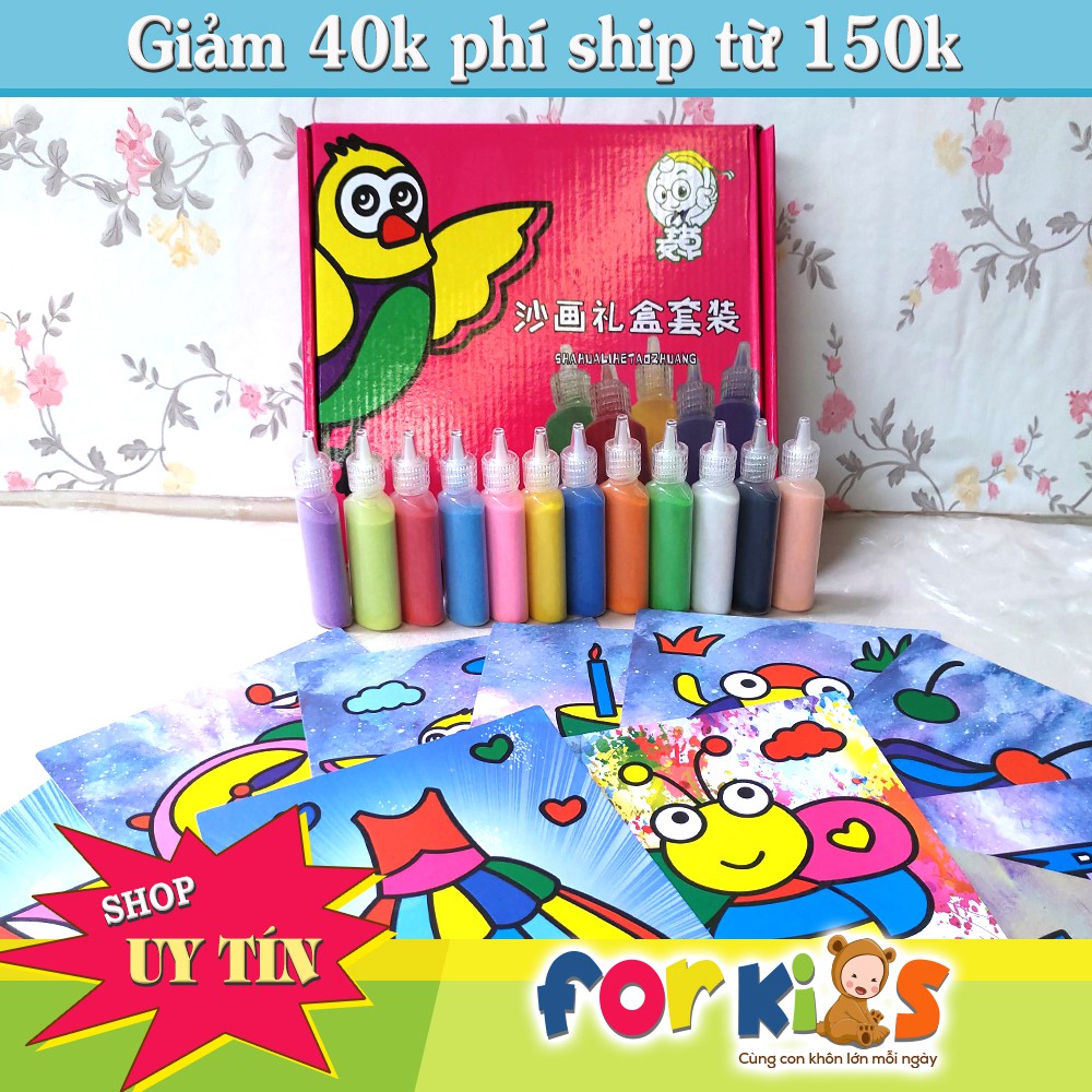 ️Tranh cát 12 màu 12 tranh cho bé gồm: ( sản phẩm có thể thay đổi bao bì) - 12 tranh cát ( mỗi tranh kích thước 20cm*15cm). - 12 lọ cát mầu khác nhau, tiện dụng, vặn mở nắp là bé có thể đổ cát lên tranh để bắt đầu tô mầu bức tranh - 1 que gỗ, 1 khay để tranh, 1 phễu giấy nhỏ và 1 chổi quét nhỏ để hỗ trợ bé dễ dàng trong việc hoàn thiện bức tranh một cách gọn, đẹp. Hướng dẫn chơi từng bước mẹ có thể xem ảnh, với khay để tranh và phễu, bé có thể dọn dẹp một cách gọn gàng, tránh cát thừa vương vãi khắp nơi. ĐIỂM NỔI BẬT Là trò chơi thú vị lúc nhàn rỗi của người lớn, đồng thời kích thích khả năng tư duy, sáng tạo với màu sắc của trẻ nhỏ. Rất dễ dàng thực hiện. Có rất nhiều hoa văn phong phú: từ cỏ hoa cây lá cho đến những hình hoạt hình ngộ nghĩnh. + Khác với tranh cát của các nghệ nhân là phải rắc cát vào lọ thủy tinh rồi tạo hình tương đối phức tạp, người chơi tranh cát này chỉ việc chọn một bức tranh, sau đó dùng chiếc tăm tre để lật những miếng đề can màu vàng theo các đường rạch, rồi lựa chọn màu cát mình yêu thích rắc vào để hoàn thành bức tranh. Chất keo trong bức tranh sẽ bám chặt vào cát. + 12 màu cát được làm từ những hạt cát sạch, nhuộm màu tươi tắn sẽ lần lượt xuất hiện trong tranh. Vậy là bạn sẽ có một kiệt tác của riêng mình với màu sắc sặc sỡ, trông rất thích mắt. + Bộ tranh cát 12 màu cho bé mang đến không gian sáng tạo ngay tại nhà. Với rất nhiều hoa văn từ cỏ hoa cây lá cho đến những hình hoạt hình ngộ nghĩnh, bạn có thể tha hồ kết hợp màu sắc của cát để tạo ra những bức tranh mang đậm phong cách của mình. + Việc tự tay mình có thể tạo ra một tác phẩm nghệ thuật đã là một niềm vui và việc lưu giữ lại những tác phẩm ấy để khoe với bạn bè, gia đình còn là niềm vui to lớn hơn. Bạn hãy yên tâm là những bức tranh cát sau khi hoàn thành có thể giữ được rất lâu nhé. ------------------------------------------------ ➥ ➥ ➥ ➥ Cam kết của Forkids: - Sản phẩm như hình - Bảo hàng đổi trả lỗi do nhà sản xuất - Địa chỉ: 1050/36 Quang Trung, p.8, Gò Vấp, TP.HCM. - Sdt: 0906.435.988 ( Hiểu) ------------------------------------------------------------------------------------- #tranhcat #tranhcatchobe #totranhcat #totranhcongchua #totranhsieunhan #totranhnguoinhen #totranhchobe #totranhcathinhcongchua #totranhcathellokitty #totranhcatdoremon #dochoichobe #dochoitritue #dochoitrituechobe #dochoitreem #tranhcát #tôtranh #tôtranhcát