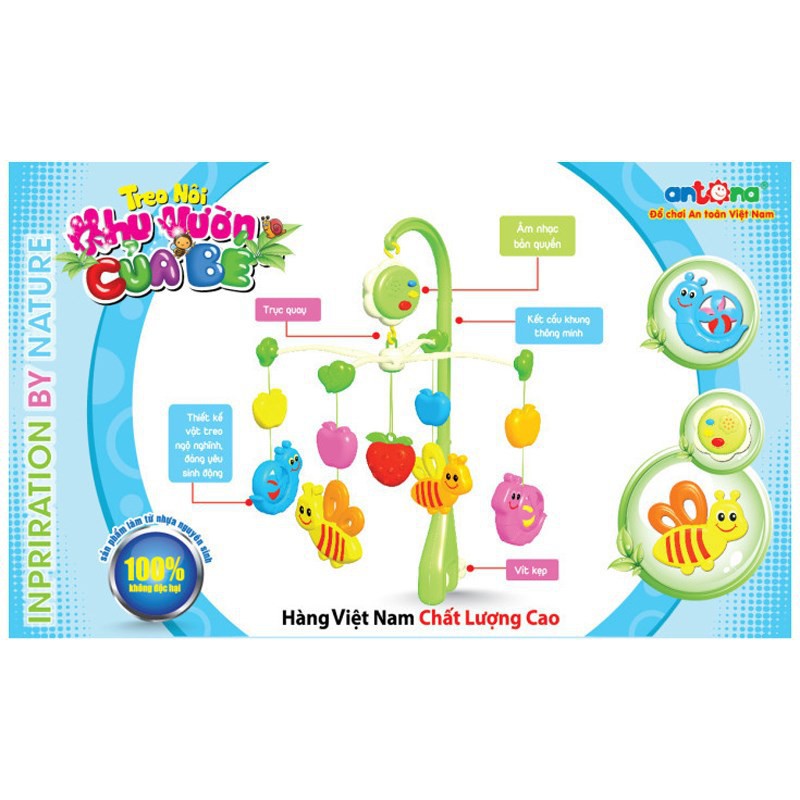 ️Chi tiết sản phẩm Hàng VIỆT NAM chất lượng cao-hãng ANTONA Được lấy cảm hứng từ thiên nhiên, treo nôi “Khu vườn của bé” có thiết kế là một khu vườn thu nhỏ, có cây, có hoa, có quả và có cả côn trùng. được làm từ 100% nhựa nguyên sinh và chất liệu an toàn, đảm bảo an toàn cho trẻ khi vui chơi. có nhiều con vật với nhiều loại âm thanh, nhiều màu sắc và cách chơi khác nhau. phù hợp cho nhiều giai đoạn phát triển của trẻ.treo nôi “Khu vườn của bé” là một đồ chơi dành cho bé từ 2 tháng tuổi trở lên, giúp bé phát triển một cách toàn diện nhất về cả thể chất và tinh thần. Với thiết kế đặc biệt là một khu vườn nhỏ cùng với bài hát ru có lời thể hiện tình yêu thương của mẹ dành cho con, Treo nôi “Khu vườn của bé” là món quà thú vị để bố mẹ gửi gắm tình yêu thương đến đứa con thân yêu của mình. Với một thiết kế mới, có nghiên cứu sâu theo tâm lý và lứa tuổi của trẻ, treo nôi “Khu vườn của bé” giúp các bé cảm nhận được thế giới thiên nhiên gần gũi hơn và được khám phá thế giới thú vị xung quanh mình. Kích thước: cân nặng:2000gr chiều dài:45cm chiều rộng:30cm chiều cao:10cm Xuất xứ:hàng VIỆT NAM #treonoikhuvuon #dochoitreonoi #treonoicuabe Shop đảm bảo kệ rất chắc chắn, thiết kế bám thành rất vững, bạn có thể gắn ở khung nôi, xe đẩy, tháo lắp dễ dàng nên có thể di chuyển treo nôi dễ dàng nhé!