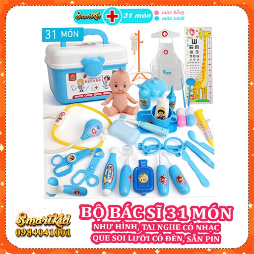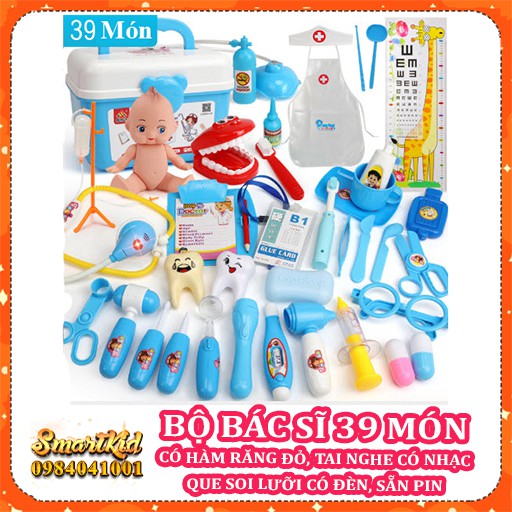 ️Đồ Chơi Bác Sĩ Cho Bé Xịn 31 39 Món (Có hàm răng đỏ, Que soi lưỡi có đèn, Tai nghe có nhạc) ➥ Đồ Chơi Bác Sĩ Cho Bé Xịn 31 39 Món Là 1 trò chơi mô phỏng bác sĩ y tá cứu thương đa năng (Có hàm răng đỏ, Que soi lưỡi có đèn, Tai nghe có nhạc) ➥ Số lượng 31 món: 1 Nhiệt kế, 1 búa y tế, 1 kéo, 1 kìm cặp, 1 kính, 1 nhíp, 1 oxy già, 1 đèn soi, 1 bộ thở oxy, 1 xà phòng, 2 viên thuốc, 1 kim tiêm, 1 dao, 1 que gạt, 1 que soi y tế, 1 bộ tiêm truyền, 1 tai nghe y tế, 1 hộp chưa đồ, 1 búp bê, 1 tạp dề, 1 mũ y tế, 1 bảng đo chiều cao, 1 ca nước, 1 kem đánh răng, 1 bài chải, 1 túi sưởi, 1 khoan tay răng, 1 ngoáy tai, 1 que và 1 đè lưỡi ➥ Số lượng 39 món: 31 món + hàm răng đỏ, 2 răng xinh, sổ khám bệnh, thẻ y tế,… ➥ Màu sắc: Hồng hoặc Xanh ➥ Có 1 quyển sách hướng dẫn lắp ghép ➥ Chất liệu: Nhựa ABS an toàn tiêu chuẩn quốc tế ➥ Cho trẻ: 3-8 tuổi ➥ Kích thước, trọng lượng: 17x22x16cm, 1000g ❤️HÃY TƯỞNG TƯỢNG Con bạn sở hữu Đồ Chơi Bác Sĩ Cho Bé Xịn 31 39 Món sẽ vui đến nhường nào, chúng sẽ tò mò tìm hiểu và vô cùng thích thú, mọi thứ trẻ cần đều trong tầm tay bạn nhé. >>>>>> Click MUA Đồ Chơi Bác Sĩ Cho Bé Xịn 31 39 Món và các món tương tự của SmartKid cho trẻ nhé ➥ Mô Hình Tập Làm Đầu Bếp 14 Món ➥ Mô Hình Tập Làm Đầu Bếp 29 Món ➥ Mô Hình Sửa Chữa Nhỏ 14 Món ➥ Mô Hình Sửa Chữa To 32 Món ➥ Mô Hình Đồ Chơi Bác Sĩ Y Tế Y Tá Cho Bé Xịn 31 Món ?Mô Hình Siêu Thị Thanh Toán VIP ?Mô hình Spa Thợ Tạo Mẫu Tóc ?Mô Hình Thợ Mộc Lắp Ráp Ghế Gỗ #smartkid #đồchơigiáodục #đồchơitrítuệ #đồchơithôngminh #dochoigiaoduc #dochoitritue #mohinhyte #mohinhbacsi #31 #cuuthuong #boardgame #choitheonhom #trecon #teamwork #nhasi #valikeobacsi #29 #21 #39