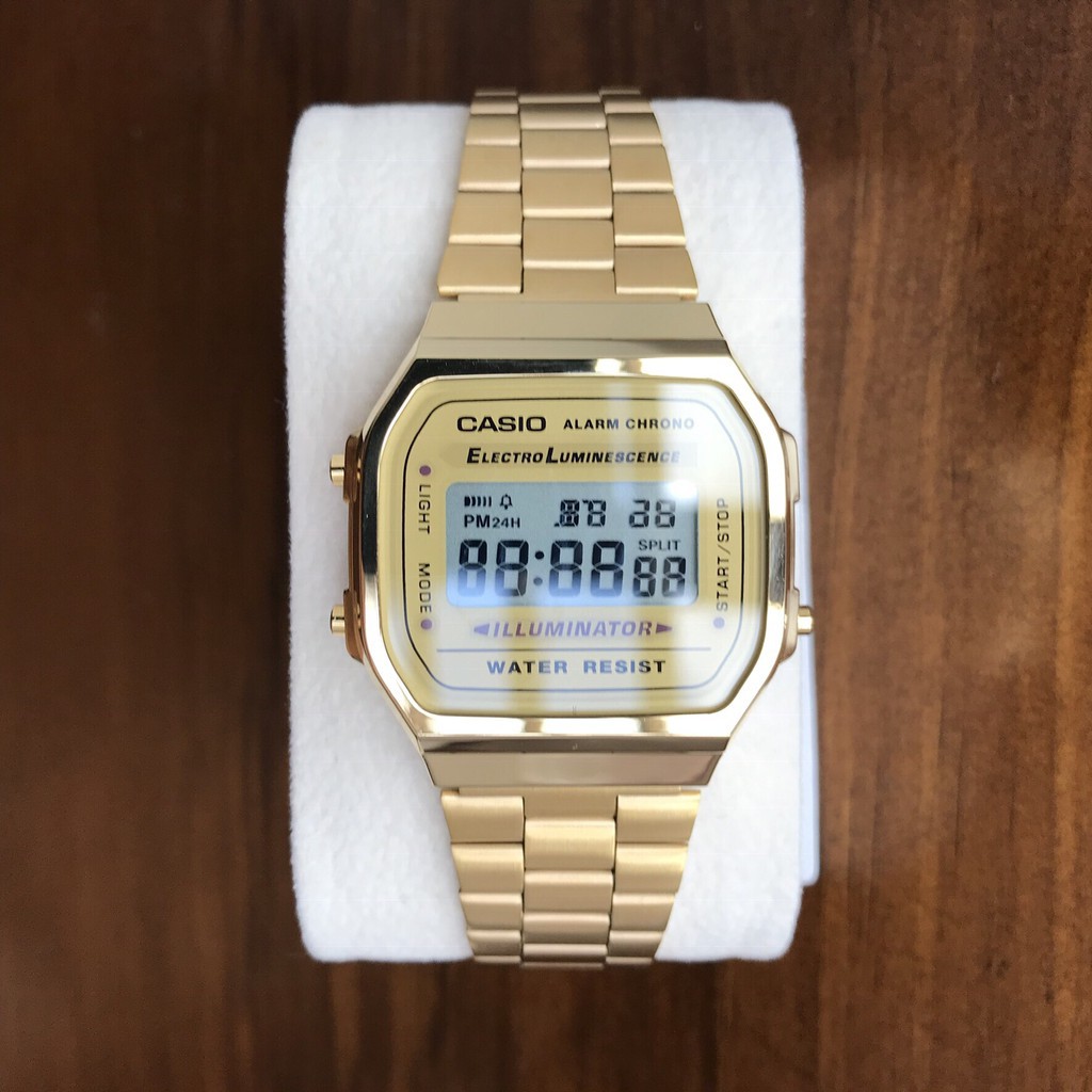 ️Đồng hồ xách tay chính hãng 100% Thương hiệu: Casio Xuất xứ thương hiệu: Nhật Bản Model: A168WG-9WDF Độ chịu nước: 5ATM Độ dày: 9.6mm Đường kính / Kích thước mặt 38.6mm x 36.3mm Mặt đồng hồ: Vuông Loại đồng hồ: Pin Chất liệu dây: Thép không gỉ Giá rẻ hiện tại trên Watch Factory: 1.100.000đ Giá hiện tại trên donghohaitrieu.com: 1.598.000đ Link xem giá trên donghohaitrieu.com: https://goo.gl/ws3hvs MÔ TẢ SẢN PHẨM Đồng Hồ xách tay chính hãng 100% với thiết kế mặt vuông trẻ trung kết hợp với tông màu sang trọng, đẳng cấp của dây đeo góp phần tạo nên vẻ ngoài chỉn chu, lịch thiệp cho các quý ông và quý cô. Vỏ đồng hồ xách tay chính hãng và dây đeo bằng thép không gỉ chống ăn mòn, chống oxi hóa. Mặt đeo gia công từ kính khoáng có độ cứng cao, chịu va đập và giữ vẻ ngoài sáng bóng dài lâu theo thời gian. Có nút điều chỉnh tiện dụng bên hông. Khi đeo đồng hồ ôm sát cổ tay thoải mái, không gây ra cảm giác nhờn rít. Dễ dàng kết hợp với nhiều phong cách trang phục: Áo Thun, áo Sơ Mi, quần Kaki, quần Jeans, giày Sneakers,... #dongho #vongtay #yeuthich #thoitrangnam #daydongho #vongtay #giare #donghocatinh #donghonu #hangtot #donghonam #donghochongnuoc #donghothethao #phụkiện #quatangchang #mienphivanchuyen #casio #donghophuwatch