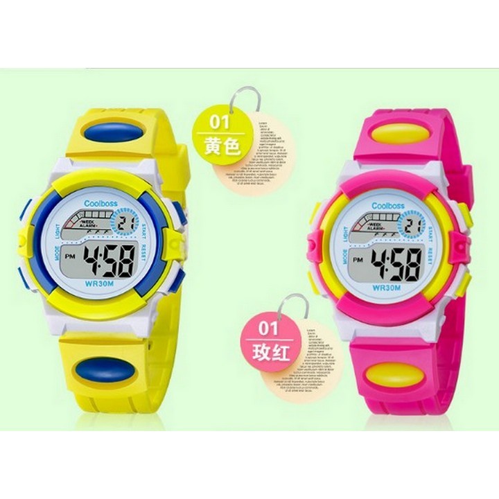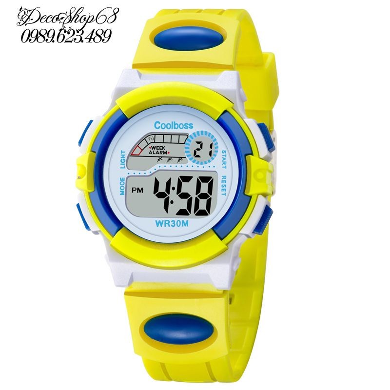 ️Đồng hồ cho bé W03-VX Chức năng: Hiển thị giờ, thứ trong tuần bằng số điện tử; Hẹn giờ; Đếm giờ; Đèn bật sáng màn hình (3 màu khác nhau) Đồng hồ dành cho trẻ em từ 2-18 tuổi Màu sắc: Vàng - xanh Đường kính mặt: 3.75 cm Chất liệu: nhựa cao cấp Trọng lượng: 26.5g