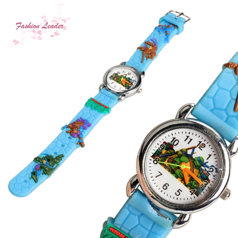️Cute Teenage Mutant Ninja Turtles Patterned Quartz watch for children 12 Arabic numerals and Teenage Mutant Ninja Turtles patterned with 3 colored watch hands display on the dial Smooth round watch case with White Dial and colorized hour markers & hands Blue rubber band with bulgy Teenage Mutant Ninja Turtles pattern, especially designed for children Simple buckle fastened, with holes to fit his/ her wrist Quartz movement with stainless steel case back Pull out the knob to adjust the time Great gift for your kids Normal water resistant, NOT for showering or swimming Battery loaded Band Material: Rubber Case Material: Stainless Steel Case Size (Dia.*T): 25 x 6mm Band Size (L x W): 200 x 15mm Blue