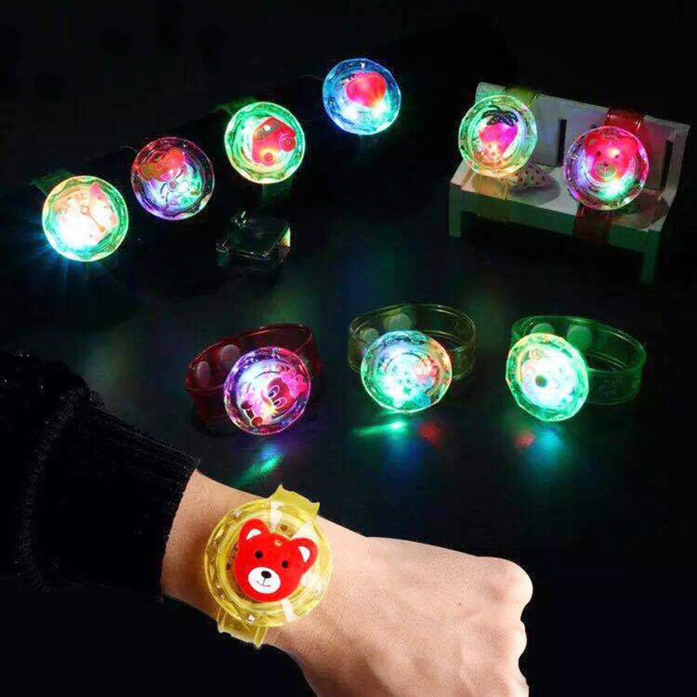 ️Dear, welcome to walkaround, here are your favorite products, welcome to buy, we also provide 24H online Q&A to solve your problems. About product, please look down~ Cute Kids Flash Wrist Band Children Cartoon Night Light Watch Glitter Glowing Bracelets Party Supplies Toys Gift Specification: Material: Acrylic + soft glue + electronic original Size: 195x13mm/7.68x0.51in Quantity: 1pc Type: Color and pattern are random. Notes: 1. Due to the different monitor and light effect, the actual color of the item might be slightly different from the color showed on the pictures. Thank you! 2. Please allow 1-3cm measuring deviation due to manual measurement.