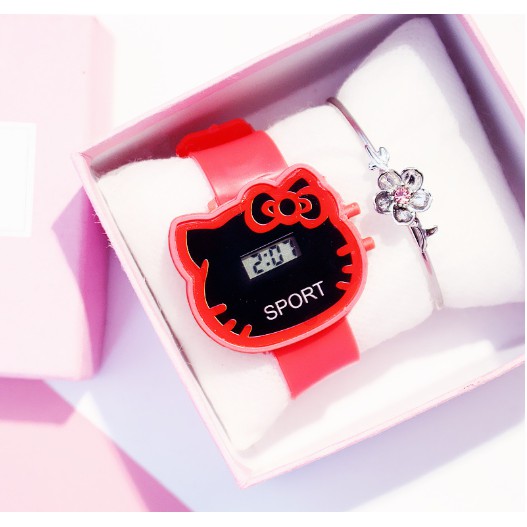 ĐỒNG HỒ ĐIỆN TỬ TRẺ EM HAZO 319 MẶT LED KITTY DỄ THƯƠNG