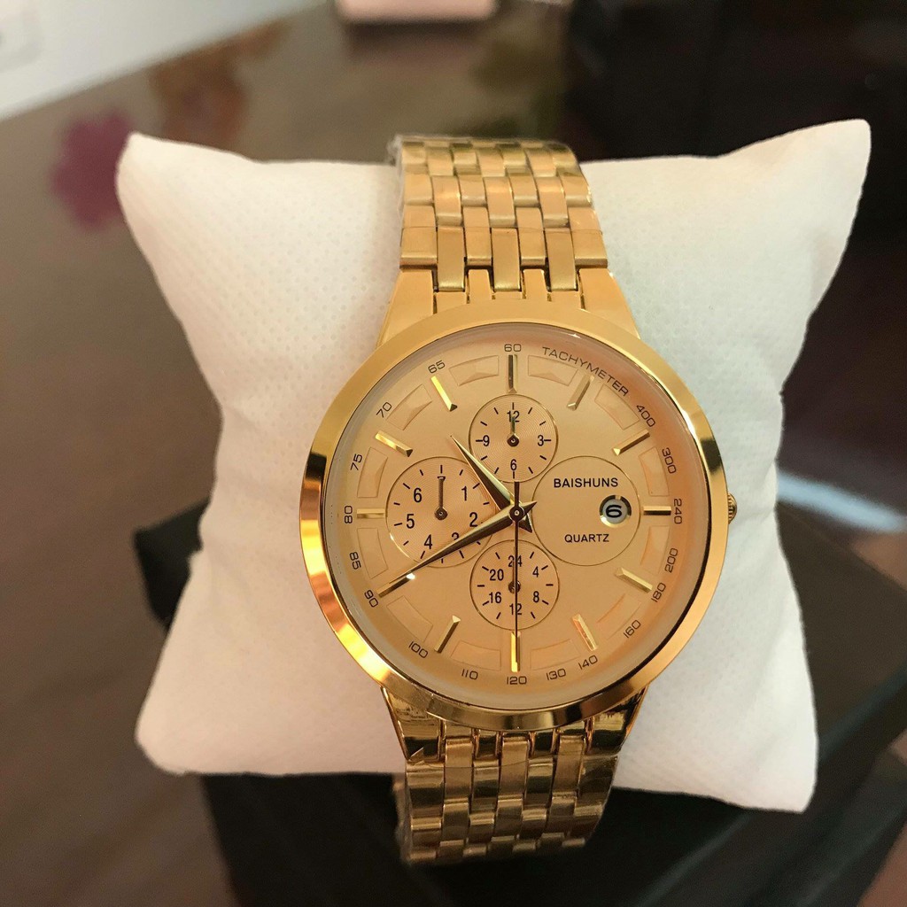 ️THÔNG TIN SẢN PHẨM - Tình trạng: Mới - Nguồn gốc: Hàng công ty - Kích thước mặt đồng hồ: 40mm - Kích thước dây đồng hồ: 20mm - Chống nước: Thấp nhất 3ATM( Đi mưa và rữa tay thoải mái) - Bảo hành: 6 tháng - Loại: Dùng kim quay hiển thị - Chất liệu mặt : Kinh cao cấp chống xước - Chất liệu vỏ: Thép không gỉ cao cấp - Năng lượng sử dụng; Pin ------------------------------------------------ GỢI Ý SỬ DỤNG VÀ BẢO DƯỠNG Nên tránh: - Va chạm và tiếp xúc với chất ăn mòn, nhiệt độ cao hoặc từ trường mạnh. - Sử dụng bất kì dung môi, chất làm sạch, chất tẩy công nghiệp, chất dính, sơn hoặc các chất xịt mỹ phẩm. - Đeo đồng hồ cùng các vòng đeo tay vì dễ tạo vết xước hay làm hỏng mặt đồng hồ. - Chỉnh nút chỉnh giờ khi đồng hồ bị ướt. - Để đồng hồ nơi nhiệt độ thay đổi đột ngột. - Sử dụng, nhấn các nút hoặc cài đặt ở dưới nước. Nên làm: - Làm sạch đồng hồ theo định kỳ vải mềm hơi ẩm để gia tăng tuổi thọ đồng hồ. - Nếu xuất hiện hơi nước ngưng tụ, cần mang đồng hồ đến Trung Tâm Dịch Vụ Khách Hàng của các hãng càng nhanh càng tốt để giảm thiểu hư hỏng bên trong. - Thay pin khi đồng hồ chạy sai giờ hoặc chuyển động kim giây không đều vì rò rỉ điện do pin chết có thể gây ra hỏng hóc nghiêm trọng cho đồng hồ. - Tắt nguồn khi không được sử dụng trong thời gian dài, để kích hoạt công tắc bảo quản nguồn đặc biệt và tránh hao pin. Đây là chiếc đồng hồ hoàn hảo là món phụ kiện lý tưởng giúp bạn hoàn thiện phong cách của chính mình. -------------------------------------------------------------------------------- Sản phẩm được phân phối bởi Công ty TNHH CP BAISHUNS Đảm bảo hàng chất lượng, giống hình ảnh. Đổi trả hàng và hoàn tiền trong vòng 7 ngày. Mọi chi tiết xin liên hệ: Nhân viên chăm sóc: 0988.402.251 ➥ Shop ưu đãi giảm 30k cho khách mua hàng lần 2 nếu khách đánh giá 5* khi mua hàng lần 1 ?? ➥ Tất cả đồng hồ ở shop đều có hộp và thẻ bảo hành của công ty. ➥ Tặng kèm pin( áp dụng từ ngày 01/01/2018) Thanks you! ❤️ ---------------------------------------------- Xu hướng của năm:#đồnghồnam #khuyếnmãi #yêuthích #thờitrangnam #chinhhang #giárẻ #vongtay #donghocatinh #donghonu #donghochongnuoc #donghothoitrang #donghodep #donghothethao #phukien