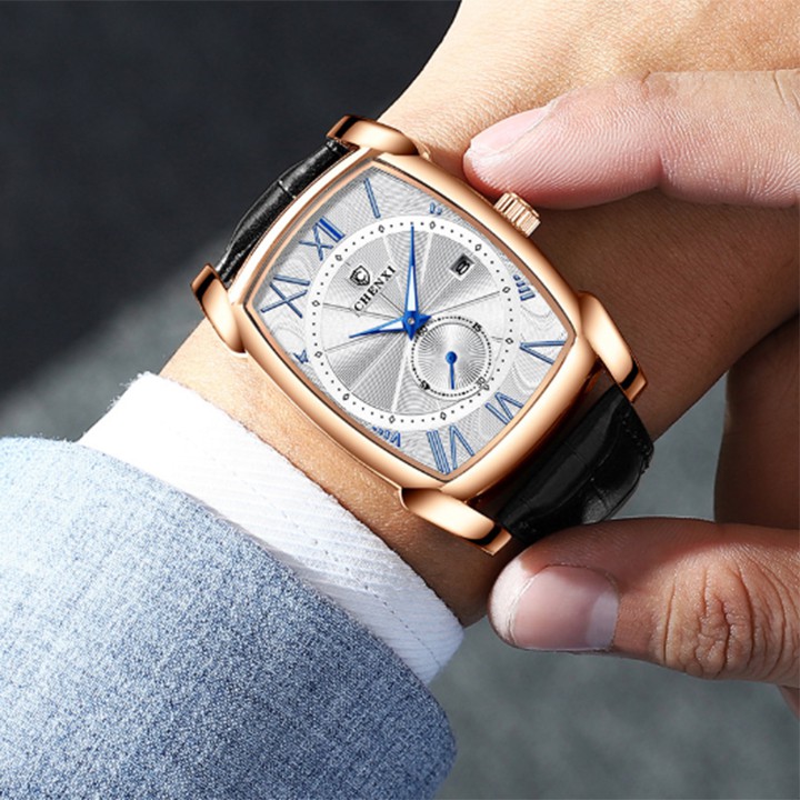 ️➥ THÔNG SỐ KỸ THUẬT ✔ Thương hiệu: CHENXI ✔ Kiểu máy: Quartz ✔ Dành cho: Nam ✔ Chất liệu vỏ: Thép không gỉ ✔ Chất liệu mặt trước: Kính cứng chịu lực ✔ Chất liệu dây: Dây da cao cấp ✔ Kích thước mặt: 38mm ✔ Độ dày mặt: 10mm ✔ Số kim: 3 có lịch ✔ Kích thước dây: 25,5mm ✔ Độ chịu nước: 30M ✔ Năng lượng sử dụng: Pin ✔ Bảo hành: Bảo hành điện tử 12 tháng ➥ GỢI Ý SỬ DỤNG VÀ BẢO DƯỠNG ❌ Nên tránh: - Va chạm và tiếp xúc với chất ăn mòn, nhiệt độ cao hoặc từ trường mạnh. - Sử dụng bất kì dung môi, chất làm sạch, chất tẩy công nghiệp, chất dính, sơn hoặc các chất xịt mỹ phẩm. - Đeo đồng hồ cùng các vòng đeo tay vì dễ tạo vết xước hay làm hỏng mặt đồng hồ. - Chỉnh nút chỉnh giờ khi đồng hồ bị ướt. - Để đồng hồ nơi nhiệt độ thay đổi đột ngột. - Sử dụng, nhấn các nút hoặc cài đặt ở dưới nước. ☑ Nên làm: - Làm sạch đồng hồ theo định kỳ vải mềm hơi ẩm để gia tăng tuổi thọ đồng hồ. - Thay pin khi đồng hồ chạy sai giờ hoặc chuyển động kim giây không đều vì rò rỉ điện do pin chết có thể gây ra hỏng hóc nghiêm trọng cho đồng hồ. - Tắt nguồn khi không được sử dụng trong thời gian dài, để kích hoạt công tắc bảo quản nguồn đặc biệt và tránh hao pin. ➥ CAM KẾT MUA HÀNG ✔ Sản phẩm phân phối chính hãng, nói không với hàng giả hàng nhái ✔ Hoàn tiền 500% nếu phát hiện sản phẩm không như cam kết ✔ Bảo hành 12 tháng, hỗ trợ đổi trả sản phẩm trong 7 ngày với mọi lỗi từ nhà sản xuất ✔ Luôn đi kèm bộ quà tặng cao cấp và các chương trình khuyến mãi tri ân khách hàng #dongho #đồnghồ #đồnghồdâyda #đồnghồdâydanam #đồnghồnam #donghonam