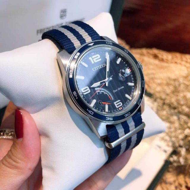 ️#Citizen Eco-drive PRT Blue Nato - AW7038-04L thiết kế dây Nato đậm cá tính, bụi bặm vs bền bỉ ➥ Dây Nato với chất liệu nylon mang lại cảm giác nhẹ nhàng, thoải mái ➥ Case 42mm vừa đẹp mọi cỡ tay ➥ Bộ kim chỉ năng lượng lạ mắt, cá tính ➥ Chất liệu vỏ thép không gỉ mờ rất sang vs mạnh mẽ ❌ Fullbox, tag chính hãng. Bao test ➥ Phụ kiện: fullbox, pin, tag ➥ Hàng ở ngoài đẹp hơn hình hen. ➥ Cam đoan ➥ chính hãng. No fake. Bao test -------------- THÔNG SỐ KỸ THUẬT ➥ Thương hiệu: CITIZEN ➥ Model Number: AW7038-04L ➥ Kiểu mặt: tròn ➥ Khóa: Khóa cài ➥ Mặt hiển thị: Analog ➥ Chất liệu mặt: Mineral ➥ Kích thước mặt: 42mm ➥ Độ dày case: 11mm ➥ Chất liệu viền ngoài mặt: Thép không gỉ ➥ Chất liệu dây: dây Nato ➥ Độ rộng dây: 21mm ➥ Độ dài dây: Tiêu chuẩn vòng tay nam ➥ Màu dây: Blue ➥ Màu mặt: Blue ➥ Kiểu máy: Eco - Drive ➥ Chịu nước: 10ATM ➥ Bảo hành: 12 tháng ➥ Xuất xứ: Mỹ -------------- ➥ Vì là hàng on sale, số lượng ít nên vui lòng inbox để check kho, hãy sms/viber/zalo/inbox: 0938791001 (ms.Tiên) TINGO SHOP CAM KẾT ➥ Tất cả sản phẩm đều là CHÍNH HÃNG 100%, bao check trên mọi phương diện. ➥ Hình ảnh CHÂN THỰC, sản phẩm Y HÌNH (Màu sắc có thể chênh lệch đậm nhạt đôi chút do chụp bằng ĐT và ánh sáng khi chụp) #tingoshop #donghonu #donghothoitrang #donghoxachtay #donghochinhhang #donghocaocap #donghonam #donghosale #donghohanghieu