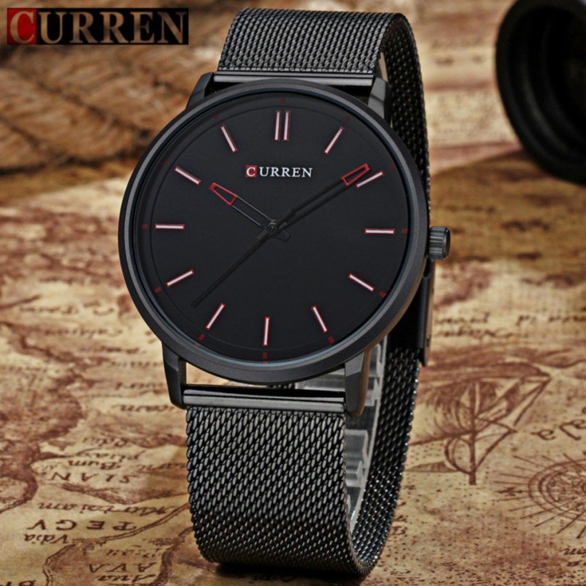 đồng hồ nam curren dây đen mặt đen kim đỏ cực nổi chất hơn cả nước cất