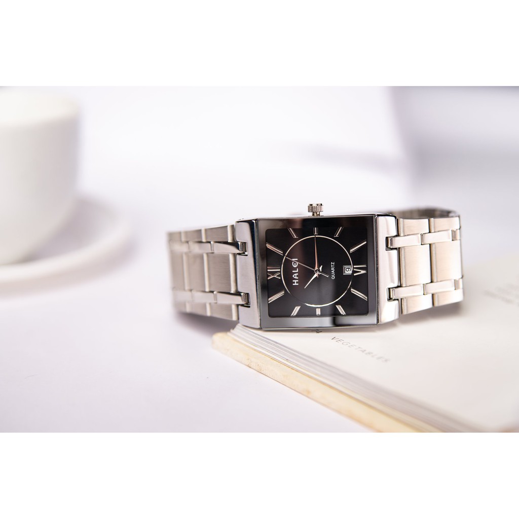 ️Đồng Hồ Nam HALEI 564M Cao Cấp Mặt Vuông Lịch Lãm Dây Bạc Mặt Đen THÔNG SỐ KỸ THUẬT - Thương hiệu: HALEI - Kiểu máy: Quartz - Dành cho: NAM - Chất liệu vỏ: Thép không gỉ - Chất liệu mặt trước: Mineral – Kính cứng - Chất liệu mặt sau: Thép không gỉ - Chất liệu dây: Thép không gỉ - Vành đồng hồ: Trơn - Kích thước mặt: 4.0 cm X 2,8 cm - Độ dày mặt: 0,8 cm - Kích thước dây: Dài x rộng: 24 x 2,2 cm - Độ chính xác: +- 20 giây 1 tháng - Số kim: 3 kim, có lịch ngày - Độ chịu nước: 3 ATM. ( Chịu nước đi mưa rửa tay ,rửa xe , tắm giặt) - Năng lượng sử dụng: Pin - Bảo hành: máy 12 tháng BỘ SẢN PHẨM BÁN CHUẨN GỒM - 1 Đồng hồ HALEI Chính Hãng - 1 Hộp đựng đồng hồ - 1 Vòng Phong Thủy May Mắn 99K Mang đến cho khách hàng sự hài lòng nhất khi mua sắm Nội dung mô tả sản phẩm CHI TIẾT NHẤT và CHÂN THẬT NHẤT Hình ảnh CHÂN THỰC về sản phẩm Chế độ hậu mãi và chăm sóc mang lại sự hài lòng sau khi mua sắm Chế độ bảo hành đầy đủ như môt tả sản phẩm.