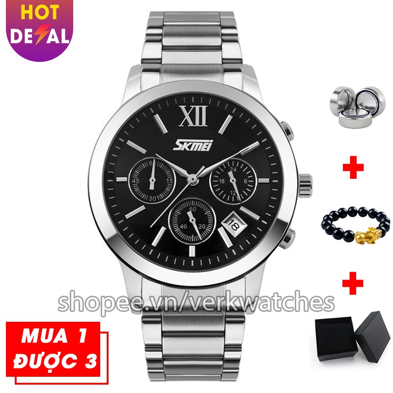 ️➥ CHÚNG TÔI CAM KẾT ✔ MẪU MÃ, CHẤT LƯỢNG sản phẩm giống như mô tả ✔ Giao hàng COD toàn quốc ✔ BẢO HÀNH 12 tháng, thay pin MIỄN PHÍ trọn đời ✔ Hỗ trợ ĐỔI TRẢ trong vòng 7 ngày ➥ Giới thiệu sản phẩm [FREESHIP] ĐỒNG HỒ NAM CHRONOGRAPH 6 KIM DÂY THÉP KHÔNG GỈ SKMEI VK001 - Verk Watches ⌚️ Là sự kết hợp hài hòa giữa kiểu dáng và chất lượng, những chiếc đồng hồ đến từ thương hiệu SKMEI xứng đáng là một lựa chọn của phái mạnh. Chiếc đồng hồ SKMEI được thiết kế để dành riêng cho những chàng trai trẻ trung, năng động. Sở thiết kế mặt tròn nam tính và mạnh mẽ, các chi tiết trang trí như vạch chia giờ, kim đồng hồ... được bố trí một cách hài hòa, đạt tính thẩm mỹ cao, sản phẩm góp phần tạo nên phong cách riêng cho bạn. Hơn thế nữa với tính ứng dụng cao, bạn có thể kết hợp chiếc đồng hồ này với những bộ trang phục khác nhau để tạo nên phong cách riêng đầy cuốn hút. ➥ THÔNG SỐ KỸ THUẬT ✔ Thương hiệu: Skmei ✔ Kiểu máy: Quartz ✔ Dành cho: Nam ✔ Chất liệu vỏ: Thép không gỉ ✔ Chất liệu mặt trước: Kính cứng ✔ Chất liệu dây: Thép không gỉ ✔ Kích thước mặt: 40mm ✔ Độ dày mặt: 10mm ✔ Số kim: 6, có lịch ✔ Độ chịu nước: 5ATM ✔ Năng lượng sử dụng: Pin ✔ Bảo hành: Bảo hành đồng hồ 12 tháng ➥ GỢI Ý SỬ DỤNG VÀ BẢO DƯỠNG ❌ Nên tránh: - Va chạm và tiếp xúc với chất ăn mòn, nhiệt độ cao hoặc từ trường mạnh. - Sử dụng bất kì dung môi, chất làm sạch, chất tẩy công nghiệp, chất dính, sơn hoặc các chất xịt mỹ phẩm. - Đeo đồng hồ cùng các vòng đeo tay vì dễ tạo vết xước hay làm hỏng mặt đồng hồ. - Chỉnh nút chỉnh giờ khi đồng hồ bị ướt. - Để đồng hồ nơi nhiệt độ thay đổi đột ngột. - Sử dụng, nhấn các nút hoặc cài đặt ở dưới nước. ☑ Nên làm: - Làm sạch đồng hồ theo định kỳ vải mềm hơi ẩm để gia tăng tuổi thọ đồng hồ. - Nếu xuất hiện hơi nước ngưng tụ, cần mang đồng hồ đến Trung Tâm Dịch Vụ Khách Hàng của các hãng càng nhanh càng tốt để giảm thiểu hư hỏng bên trong. - Thay pin khi đồng hồ chạy sai giờ hoặc chuyển động kim giây không đều vì rò rỉ điện do pin chết có thể gây ra hỏng hóc nghiêm trọng cho đồng hồ. - Tắt nguồn khi không được sử dụng trong thời gian dài, để kích hoạt công tắc bảo quản nguồn đặc biệt và tránh hao pin. ➥ Xem thêm sản phẩm tại: #VerkWatches #đồnghồnam #donghonam #dongho #đồnghồ #donghogiare #đồnghồgiárẻ #chốngnước #đồnghồ6kim #chronograph #đồnghồthểthao #đồnghồđiệntử #đồnghồcơ #automatic