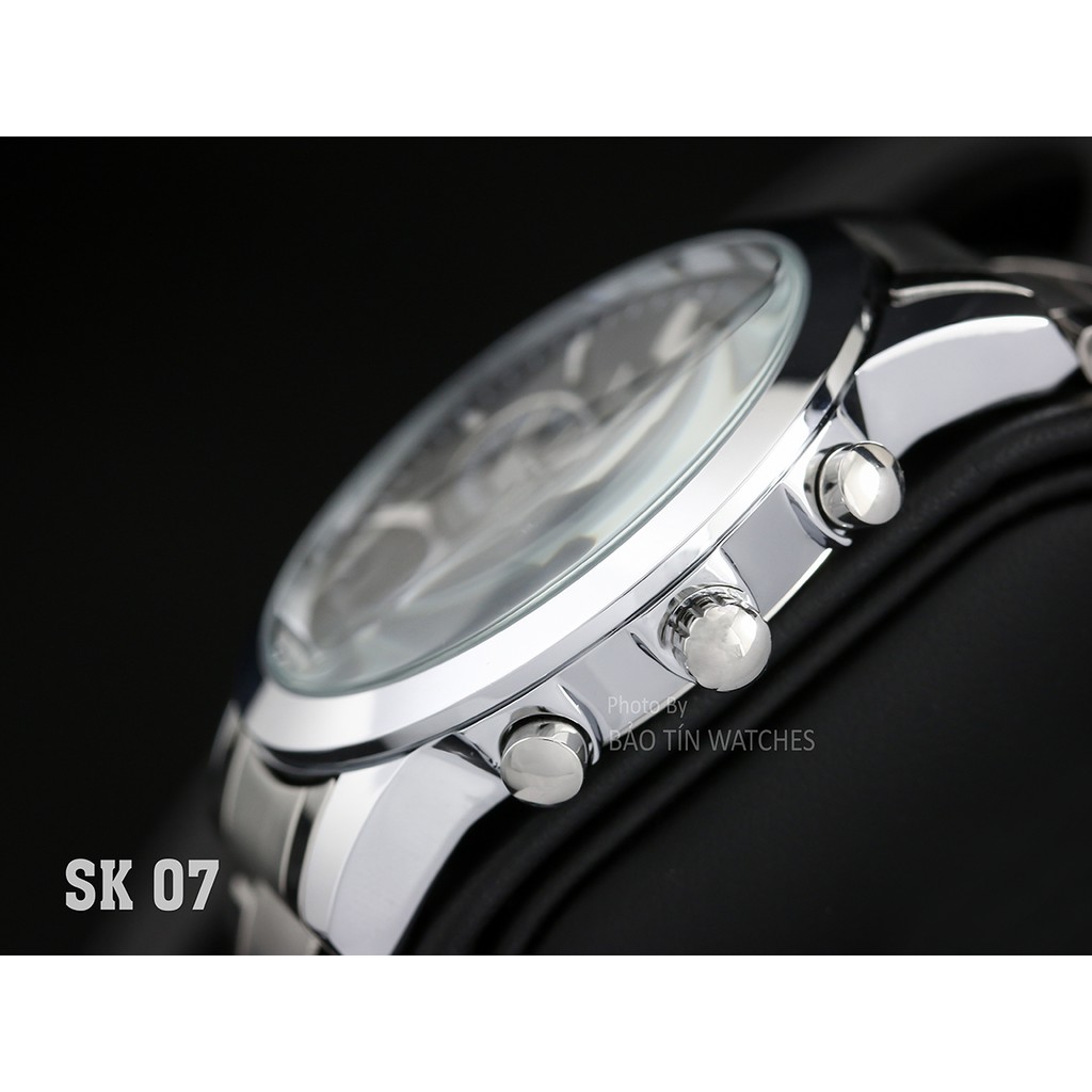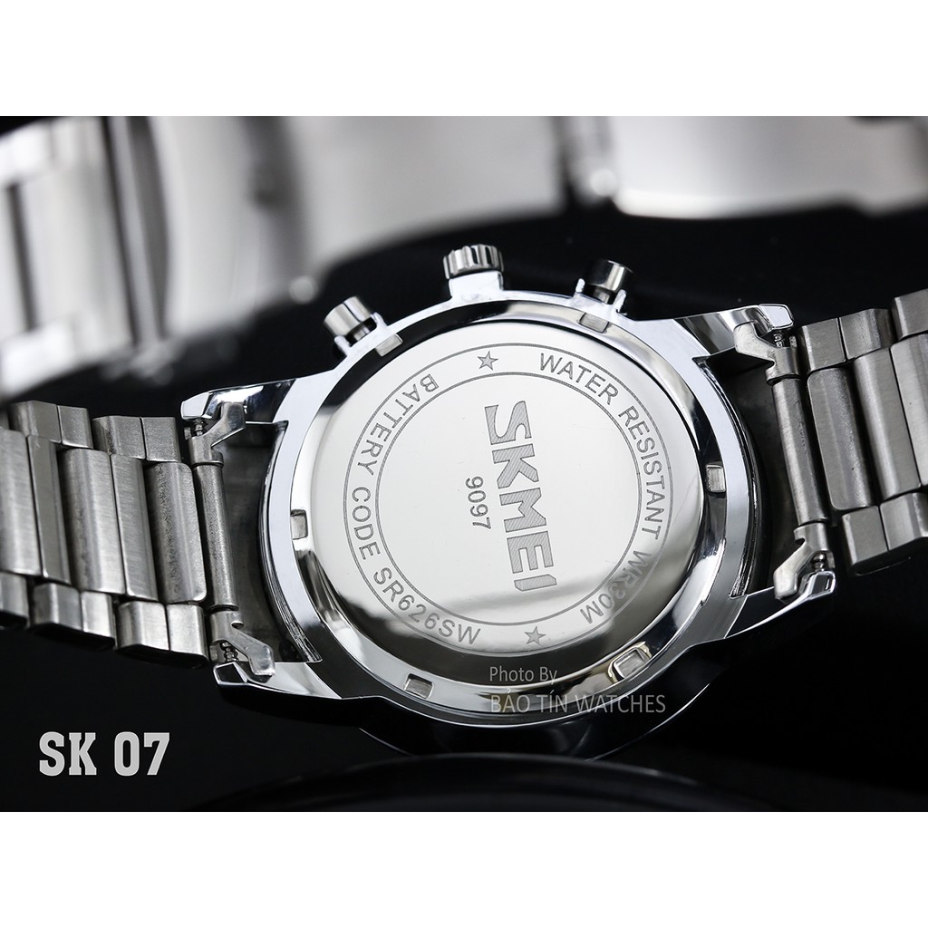 ️CHÚNG TÔI CAM KẾT: ✔ MẪU MÃ, CHẤT LƯỢNG sản phẩm giống như mô tả (hình ảnh, video là do shop tự quay, tự chụp) ✔ Chính sách ĐỔI TRẢ, HOÀN TIỀN nếu có lỗi nhà sản xuất hoặc không như mô tả. ✔ KIỂM TRA hàng trước khi thanh toán ✔ BẢO HÀNH 6 tháng, có thẻ bảo hành ✔ Nhận hàng NHANH CHÓNG -------------------------------------------------- THÔNG SỐ KỸ THUẬT Thương hiệu: SKMEI Kiểu máy: Quartz Dành cho: Nam Chất liệu vỏ: Thép chống gỉ cao cấp Chất liệu mặt trước: Kính Mineral chịu lực Chất liệu dây: Thép chống gỉ cao cấp Kích thước mặt: 40mm Độ dày mặt: 10mm Số kim: 6 , có ngày Độ chịu nước: 5ATM Năng lượng sử dụng: pin Bảo hành:Bảo hành đồng hồ 6 tháng -------------------------------------------------- GỢI Ý SỬ DỤNG VÀ BẢO DƯỠNG Nên tránh: - Va chạm và tiếp xúc với chất ăn mòn, nhiệt độ cao hoặc từ trường mạnh. - Sử dụng bất kì dung môi, chất làm sạch, chất tẩy công nghiệp, chất dính, sơn hoặc các chất xịt mỹ phẩm. - Đeo đồng hồ cùng các vòng đeo tay vì dễ tạo vết xước hay làm hỏng mặt đồng hồ. - Chỉnh nút chỉnh giờ khi đồng hồ bị ướt. - Để đồng hồ nơi nhiệt độ thay đổi đột ngột. - Sử dụng, nhấn các nút hoặc cài đặt ở dưới nước. Nên làm: - Làm sạch đồng hồ theo định kỳ vải mềm hơi ẩm để gia tăng tuổi thọ đồng hồ. - Nếu xuất hiện hơi nước ngưng tụ, cần mang đồng hồ đến Trung Tâm Dịch Vụ Khách Hàng của các hãng càng nhanh càng tốt để giảm thiểu hư hỏng bên trong. - Thay pin khi đồng hồ chạy sai giờ hoặc chuyển động kim giây không đều vì rò rỉ điện do pin chết có thể gây ra hỏng hóc nghiêm trọng cho đồng hồ. - Tắt nguồn khi không được sử dụng trong thời gian dài, để kích hoạt công tắc bảo quản nguồn đặc biệt và tránh hao pin.