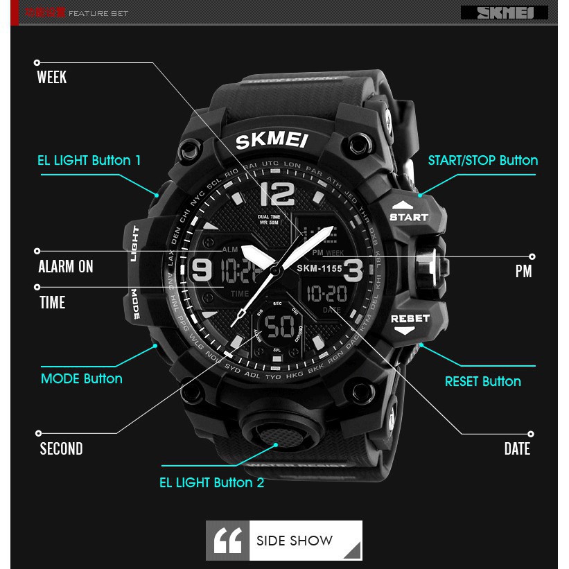 ️✔ MẪU MÃ, CHẤT LƯỢNG sản phẩm giống như mô tả ✔ Giao hàng COD toàn quốc, KIỂM TRA trước khi thanh toán ✔ BẢO HÀNH 6 tháng ✔ Hỗ trợ ĐỔI TRẢ trong vòng 2 ngày ➥ Giới thiệu sản phẩm ĐỒNG HỒ THỂ THAO NAM ĐIỆN TỬ ĐA CHỨC NĂNG SKMEI SK026 - VEMZ WATCHES ⌚️ Là sự kết hợp hài hòa giữa kiểu dáng và chất lượng, những chiếc đồng hồ đến từ thương hiệu SKMEI xứng đáng là một lựa chọn của phái mạnh. Chiếc đồng hồ SKMEI được thiết kế để dành riêng cho những chàng trai trẻ trung, năng động. Sở thiết kế mặt tròn nam tính và mạnh mẽ, các chi tiết trang trí như vạch chia giờ, kim đồng hồ... được bố trí một cách hài hòa, đạt tính thẩm mỹ cao, sản phẩm góp phần tạo nên phong cách riêng cho bạn. Hơn thế nữa với tính ứng dụng cao, bạn có thể kết hợp chiếc đồng hồ này với những bộ trang phục khác nhau để tạo nên phong cách riêng đầy cuốn hút. ➥ THÔNG SỐ KỸ THUẬT ✔ Thương hiệu: Skmei ✔ Kiểu máy: Quartz ✔ Dành cho: Nam ✔ Chất liệu vỏ: Thép không gỉ ✔ Chất liệu mặt trước: Kính cứng ✔ Chất liệu dây: Thép không gỉ ✔ Kích thước mặt: 40mm ✔ Độ dày mặt: 10mm ✔ Số kim: 3, có lịch ✔ Độ chịu nước: 3ATM ✔ Năng lượng sử dụng: Pin ✔ Bảo hành: Bảo hành đồng hồ 6 tháng ➥ GỢI Ý SỬ DỤNG VÀ BẢO DƯỠNG ❌ Nên tránh: - Va chạm và tiếp xúc với chất ăn mòn, nhiệt độ cao hoặc từ trường mạnh. - Sử dụng bất kì dung môi, chất làm sạch, chất tẩy công nghiệp, chất dính, sơn hoặc các chất xịt mỹ phẩm. - Đeo đồng hồ cùng các vòng đeo tay vì dễ tạo vết xước hay làm hỏng mặt đồng hồ. - Chỉnh nút chỉnh giờ khi đồng hồ bị ướt. - Để đồng hồ nơi nhiệt độ thay đổi đột ngột. - Sử dụng, nhấn các nút hoặc cài đặt ở dưới nước.