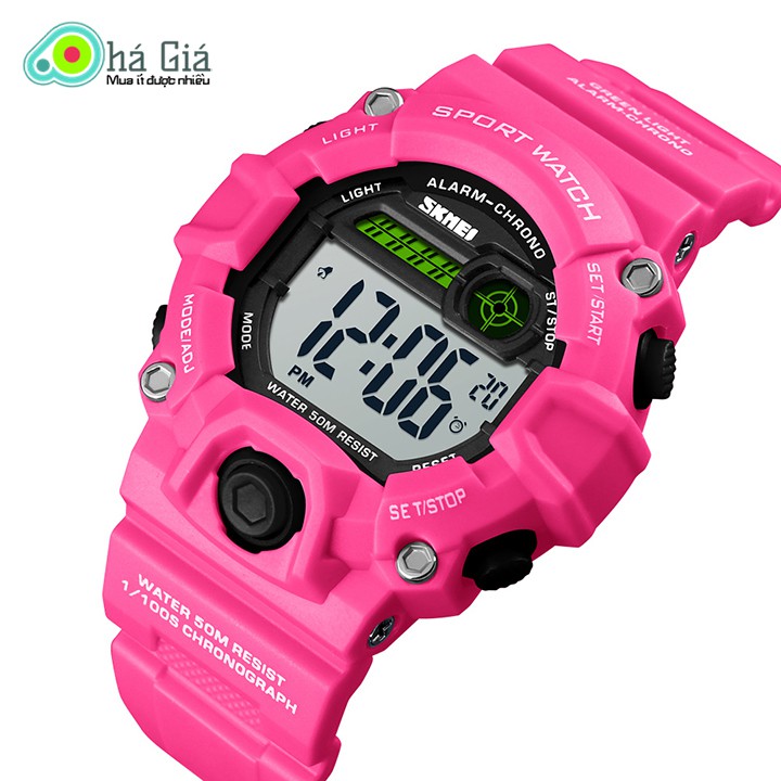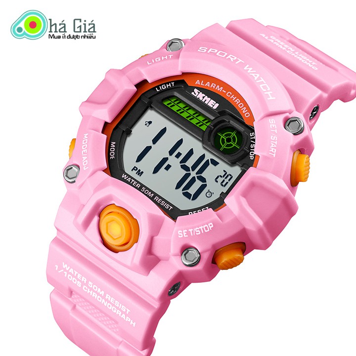 ️ ĐỒNG HỒ TRẺ EM SKMEI 1484 ĐIỆN TỬ - DHA628 Phù hợp cho bé từ 5 tuổi trở lên. Hoặc bé có vòng tay từ 13cm trở lên. Xinh xinh đáng yêu với SKMEI 1484 - cùng chất dây silicon mềm mại đeo êm tay không gây ngứa khó chịu cho bé nhà bạn. Sản phẩm chống nước chuẩn 5atm giúp bé có thể hoạt động chạy nhảy, rửa tay, đi mưa mà không cần lo ngại. THÔNG TIN CHI TIẾT TỪ CHUẨN MUA - Thương hiệu: Skmei Chính Hãng - Kiểu máy: Quartz - Dành cho: Trẻ Em - Chất liệu vỏ: Nhựa Cao Cấp - Chất liệu mặt trước: Kính cứng pha khoáng - Chất liệu dây: Cao Su - Mặt kính: Phẳng - Kích thước mặt: 37mm x 43mm (Luôn vành không tính mấu gắn dây) - Kích thước dây: 17mm - Độ dày mặt: 14mm - Cân nặng: 40g - Siêu Nhẹ - Chiều dài: 220mm - Số Kim: 0 Kim - Xem giờ/phút điện tử - Số lịch: Lịch ngày / tháng điện tử - Độ chịu nước: 5ATM Chịu nước tốt; tránh các hoạt động bơi lội - Năng lượng sử dụng: Pin chuẩn - Bảo hành: 6 tháng - Kèm phiếu bảo hành Chức năng: + Xem giờ/phút, thứ/ngày/tháng + Hẹn giờ báo thức + Bấm giờ + Đèn led xem buổi tối BỘ SẢN PHẨM BÁN CHUẨN GỒM ✔ 1 Đồng hồ SKMEI chính hãng ✔ 1 Phiếu bảo hành ✔ 1 Hộp đồng hồ