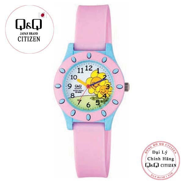 ️Đồng hồ trẻ em Q&Q Citizen VQ13J007Y là một mẫu đồng hồ có màu hồng dễ thương phù hợp với bé gái từ 4 tuổi. Mặt đồng hồ có in hình hoa hướng dương. Đồng hồ nhẹ với dây nhựa mềm giúp thoải mái hơn khi đeo. Đồng hồ chống nước tốt có thể sử dụng khi đi bơi. - Mặt kính nhựa - Vỏ, gờ viền và dây đeo nhựa. - Cỡ mặt 24mm. - Chống nước: 10 BAR - Độ sai lệch của đồng hồ: 20 giây trên một tháng. - Pin 2 năm - Bảo hành máy 5 năm + Pin thay miễn phí trọn đời - Vận chuyển: Miễn phí ship toàn quốc #donghobegai #donghodaynhua #donghotreem #behocxemgio #VQ13J007Y #donghoqqcitizen #donghocitizen #donghochinhhang