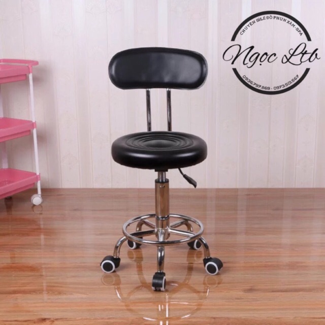 ️- Chất liệu: Kim loại mạ Inox - Nệm dày 6 cm - Ghế có trục xoay 360 độ, giúp người sử dụng có thể dễ dàng thao tác. - Chân ghế có bánh lăn dễ dàng di chuyển. - Ghế có thể nâng cao từ 46 cm - 60 cm - Có điểm tựa lưng bằng nệm mềm