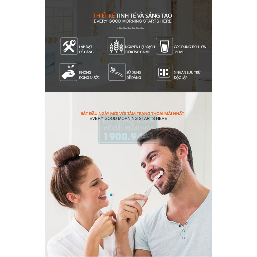 ️• Làm từ nhựa sinh học lúa mì, thân thiện môi trường, an toàn cho sức khỏe người sử dụng, chức năng lấy kem tự động giúp tiết kiệm kem đánh răng. • Giúp lấy được đến lượng kem đánh răng cuối cùng rất tiết kiệm. • Bảo quản bàn chải đánh răng gọn gàng, sạch sẽ, hạn chế bụi bẩn. • Cố định vào kính hoặc tường đá hoa bằng miếng mút chân không chắc chắn, không phải đục hay khoan tường. • Sản phẩm cũng dễ dàng lắp ráp và sử dụng. • Chất liệu : Lúa mì , nhựa thực phẩm • Kích thước: Chiều dài 24cm x rộng 9.5cm x cao 11cm.