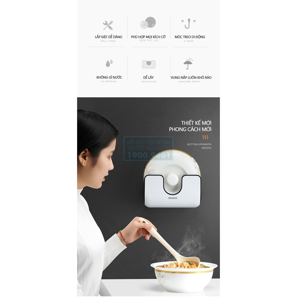 ️• Bộ sản phẩm bao gồm: 1 miếng dán + 1 giá đựng tùy màu + 4 móc treo • Miếng dính cao cấp chắc chắn trên bề mặt nhẵn phẳng, chịu lực lên đến 5kg mà không cần khoan hay đục tường. • Giá làm bằng chất liệu nhựa ABS cao cấp chống nước, thân thiện với môi trường. • 4 móc treo được gắn thông minh phía dưới giúp bạn treo muỗng, dao, kéo,… tùy ý muốn. • Treo được nắp, vung nồi có bề dày tối đa 8cm. • Thích hợp với mọi loại vung, nắp nồi hoặc chảo chiên, rán. • Kích thước: Như hình. • Xuất xứ: Hãng Ecoco – Nội địa Trung Quốc.