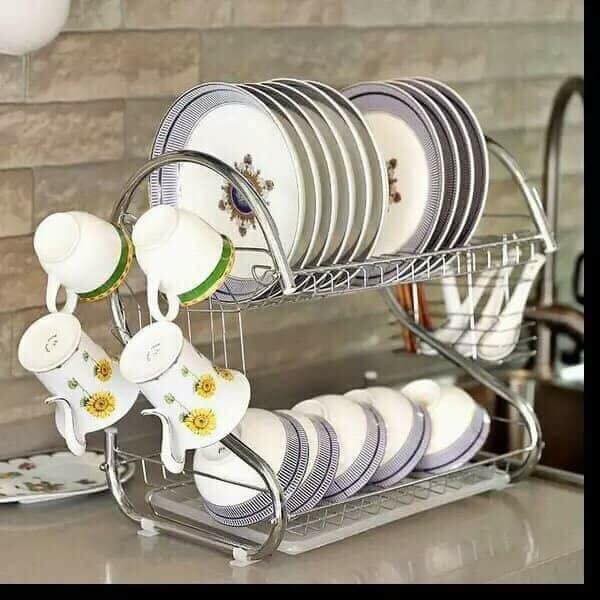 ️Giá úp là những thanh inox uốn cong tạo hình rất nghệ thuật, nhưng ko kém phần cứng cáp. Giúp b thoải mái để bát đĩa, cốc chén, có giá để thớt và ống đũa. Quá tiện lợi cho 1 cái giá thông minh phải ko ạ? Chất liệu: inox cao cấp - Kích thước: 42 x 25 x 38cm (dài x rộng x cao) - Kệ úp bát được thiết kế gồm 2 tầng, có khay hứng nước rớt giúp nước không bị chảy ra làm ướt bàn bếp Đặc điểm nổi bật của kệ úp bát 2 tầng inox - Kệ được sản xuất từ chất liệu thép bền và chắc chắn - Kệ có thể đặt góc tường tiết kiệm tối đa không gian bếp, kệ còn tạo ra sự gọn gàng, sang trọng hơn cho không gian nội thất Kệ có thiết kế 2 tầng, tầng dưới để chén dĩa, tầng trên để các loại chai lọ. Kệ còn có thêm 1 khay con để đựng muỗng đũa - Bạn sẽ có thể thoải mái sắp xếp vật dụng khoa học và hợp lý, tiết kiệm không gian một cách hữu hiệu, mang lại cảm giác ngăn nắp cho không gian bếp nhà bạn #giaupbat #keupbatinox