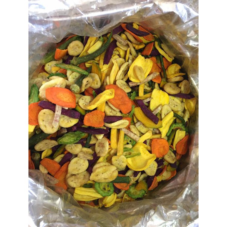️MUA NGAY THỬ LIỀN TAY THẬP CẨM SẤY GIÒN NGON, BỔ DƯỠNG ❤ Được chế biến từ các loại rau củ quả xanh ngon của Đà Lạt như chuối, khoai lang, mít, cà rốt, củ dền, cà tím, đậu bắp,… Món thập cẩm sấy khô là món quà ngon và hấp dẫn dành mọi lưới tuổi. ❤ Thập cẩm sấy khô là món ăn rất được nhiều người ưa chuộng, thập cẩm là sự kết hợp của nhiều thứ nhưng hương vị vẫn được hòa quyện vào nhau như một. Điều không thể không nhắc tới đó là nguồn dinh dưỡng trong đó rất tốt cho sức khỏe của chúng ta bởi được làm được sấy hoàn toàn thủ công, không có hóa chất bảo quản độc hại. ❤ Thập cẩm sấy có nhiều chất xơ, khoáng chất, Vitamin A, B1, B2, B3, B5, B6, các nguyên tố vi lượng, kali, sắt… phức hợp cabonhydrat đậm hơn. Chúng có tác dụng giúp cơ thể giảm thiểu nguy cơ mắc bệnh tật và khả năng hoạt động của hệ miễn dịch. Về năng lượng, trung bình trong 100g trái cây khô chứa khoảng 250 calo và 1-5g chất đạm, giàu năng lượng hơn trái cây tươi…. ❤ Đây cũng là thứ đồ ăn vặt tuyệt vời cho người lớn và trẻ em, có thể thưởng thức vào những lúc rảnh, không theo mùa. Chỉ với một chút sáng tạo, thập cẩm sấy khô cũng có thể được sử dụng trong các món sa lát, thịt hầm, cơm rang thập cẩm và nhiều món ăn độc đáo khác. ?Hoa quả sấy Đà lạt ? Xuất xứ Đà Lạt Hsd: 6 tháng