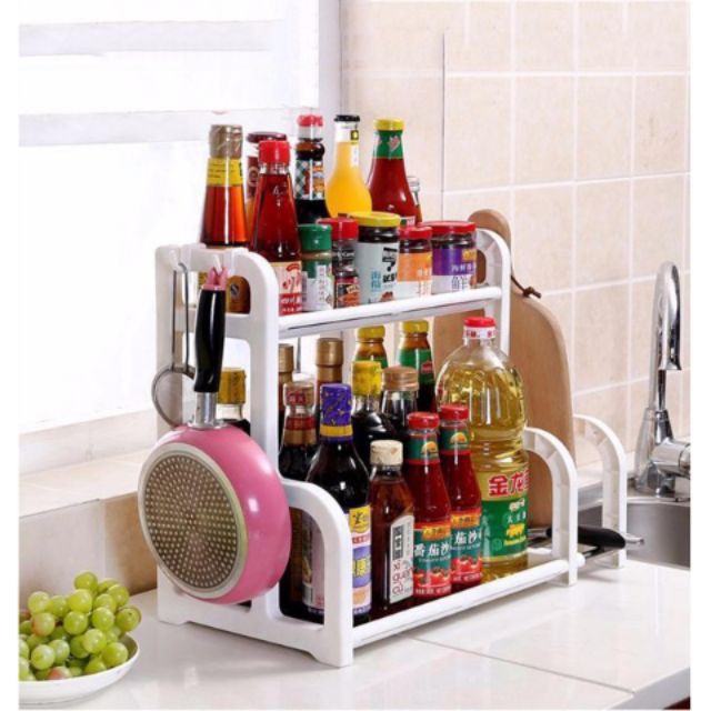 ️Kệ đựng gia vị nhà bếp 2 tầng chữ H kèm khay để thớt Dễ dàng tháo lắp khi di chuyểnTrên kệ có khe cắm dao; ống cắm đũa đựng được nhiều vật dụng. Chất liệu nhựa nguyên sinh PP + Inox khả năng chịu lực lớn Trọng lượng: 1.3 kg Thiết kế 2 tầng nhỏ gọn; tiện dụng Chất liệu: Nhựa PP Kích thước hộp: 41 x 28 x 10 cm (dài x rộng x cao) Kích thước sản phẩm: 52 x 25 x 39 cm (dài x rộng x cao)