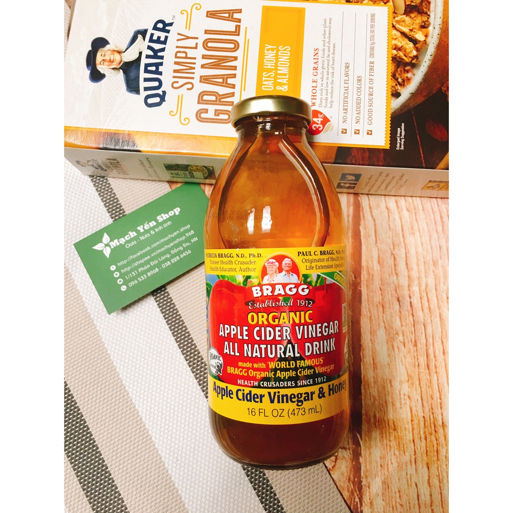 ️GIẤM TÁO HỮU CƠ HÃNG BAGG - CHÍNH HÃNG 100% TỪ MỸ Xuất xứ: Mỹ Thương hiệu: Bragg Thể tích: 473ml Hạn dùng: in trên thân chai; luôn cập nhật date mới nhất Loại nguyên chất - tháng 10/ 2023 Loại uống liền - tháng 11/ 2020 Hướng dẫn sử dụng giấm táo đúng cách Hướng dẫn sử dụng Với làn da Dưỡng sáng mịn da: Dùng một chén giấm táo BRAGG pha với nước tắm/ rửa mặt hàng ngày kiên trì trong một thời gian da sẽ sáng dần lên và khỏe mạnh. Toner giấm táo làm sạch da, se khít lỗ chân lông, giảm nhờn, ngăn ngừa mụn. Giấm táo + nước, tỉ lệ 1:3 hoặc 1:4. Hạn dùng 2 tuần để lạnh. Bạn nào da mỏng, nhạy cảm có thể pha loãng hơn để da không bị châm chích. Ngày xịt 3-4 lần. Ngoài ra, bạn có thể dùng toner giấm táo trà xanh: Giấm táo + nước trà xanh: Lấy lá trà xanh tươi bỏ vào cốc, đổ nước sôi để 20p sau đó cho giấm táo vào, tỷ lệ 1 : 1, hạn sử dụng 1 tuần để lạnh. Trị mụn: chấm giấm táo lên vị trí bị mụn và để qua đêm. Kiên trì làm trong vài ngày để nốt mụn xẹp dần. Kem dưỡng da ban đêm: Dầu oliu Nửa chén + giấm táo 1/4 chén + nước ¼ chén. Thoa đều dung dịch pha được lên da trước khi đi ngủ. Sáng dậy rửa mặt như bình thường. Làm mờ vết nám: Nhúng bông tẩy trang vào giấm táo sau đó lau đều lên phần da bị thâm nám hoặc tàn nhang, thực hiện đều đặn hàng ngày, thực hiện tốt nhất vào buổi sáng hoặc buổi tối để qua đêm. Trị gàu, dưỡng tóc mượt: Sau khi gội đầu, bạn gái nên dùng một muỗng canh giấm táo pha với ly nước ấm để massage da đầu khoảng 15 – 20 phút. Mái tóc dần trở nên bóng mượt từ chân tóc đến ngọn. 2. Với sức khoẻ Ngoài ra, giấm táo được ưa dùng trong việc hỗ trợ giảm cân, tăng cường sức khỏe. Tuy nhiên, do giấm táo chứa nhiều axit nên bạn phải pha loãng trước khi uống và uống vào thời điểm thích hợp tránh ảnh hưởng dạ dày. Cách uống thông thường để bạn tham khảo: 2-3 thìa cà phê giấm táo BRAGG nguyên chất + 1 cốc nước khoảng200ml. Mỗi ngày uống 3 lần trước mỗi bữa ăn.