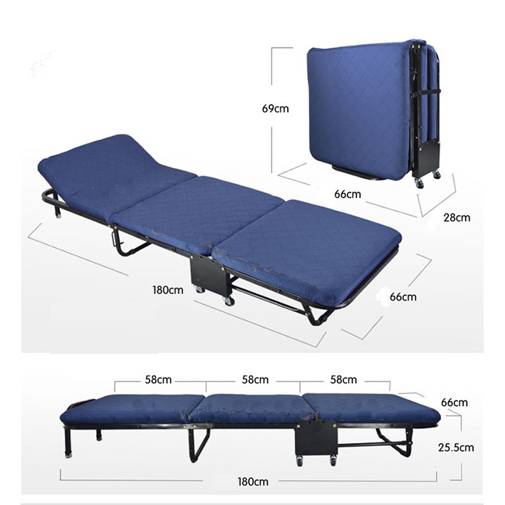 Giường gấp nâng đầu 3 đoạn GB75 được sản xuất bằng khung thép sơn tĩnh điện vững chắc và đặc biệt rất tiện lợi khi sử dụng. Giường gấp nâng đầu 3 đoạn GB75 Hãng Sản Xuất: Nikita Công Nghệ: Hàn Quốc Kích thước sử dụng (DxRxC): 1,8m x 0,75m x 0,26m Chiều dày lớp đệm: 7cm Kích thước gấp gọn: chiều dài 0.78m; chiều rộng 0,75m; chiều cao 0,26m. Chất liệu: Khung thép sơn tĩnh điện Tải trọng: 120kg Trọng lượng: 20kg Mô tả sản phẩm + Đệm: 7 cm được làm bằng chất liệu mút cao cấp nhập khấu Hàn Quốc, mềm mại không bị lún ép sau thời gian sử dụng dài, Đệm được cấu tạo bởi 2 lớp: Lớp trên cùng là lớp mút lỗ với 4 lỗ thoát khí tạo cảm giác thoáng mát cho người nằm, lớp bên dười là lớp mút xốp siêu nhẹ. + Khung giường: làm bằng thép sơn tĩnh điện bền & chắc chắn, nối với nhau bằng bản lề có thể gấp gọn sau khi sử dụng. + Chân giường có khóa chốt an toàn cố định giường. + Vỏ đệm cấu tạo bới chất vải mịn, không xù, có thể tháo rời, giặt sạch + Đầu giường: có thể nâng lên hạ xuống với 5 mức độ khác nhau (tối đa là 90 độ) rất tiện dụng trong lúc đọc sách, thư giãn hoặc bệnh nhân trong điều trị được bác sĩ chỉ định nằm cao đầu. Giường gấp hàn quốcđược thiết kế khá sang trọng và đẹp mắt. Đầu giường xếp có thể nâng lên và hạ xuống rất tiện lợi trong những lúc đọc sách, thư giãn hoặc trong điều trị khi bác sỹ chỉ định phải nằm cao đầu. Ngoài những tiện ích như vậy Giường gấp nâng đầu 3 đoạn GB65 sau khi sử dụng có thể gấp gọn tối đa để tiết kiệm diện tích vì vậy rất phù hợp không gian văn phòng, khách sạn, ký túc xá, và nhưng trung tâm trăm sóc sức khỏe. Cửa hàng chuyên cung cấp các loại giường gấp hàn quốc giá rẻ. #giườngxếp #giườngxếphànquốc #giườnggấp #giườnggấphànquốc #giườnggấpGB75 #giườngđanăng #giuongxep #giuonggaphanquoc #giuonggiare #giuongxepGB75 #giườnggấpbađoạn #giuonggap3doanGB75