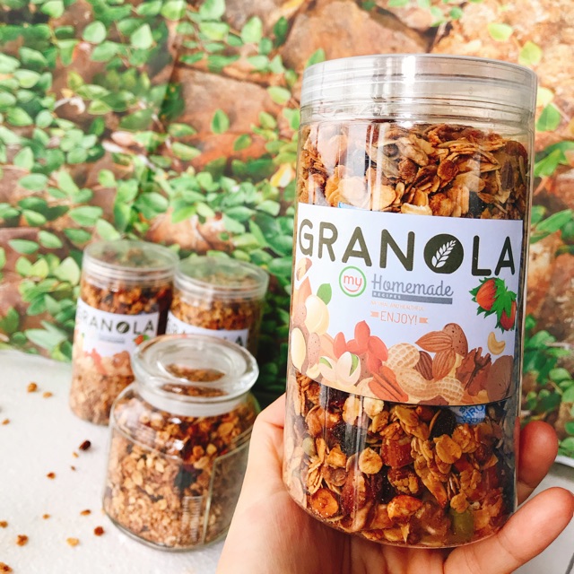 ️Granola homemade thành phần gồm yến mạch, hạnh nhân, óc chó, hướng dương, hạt bí, hạt điều Quả khô gồm có nam việt quất, mơ thổ nhĩ kì, nho khô 100% khách nhận đều khen ngon luôn ạ :) Sản phẩm tự nhiên hoàn toàn, ko dùng đường, ko chất phụ gia, ko chất bảo quản Ăn kiêng giảm cân hoặc gymer siết cơ quá ok Healthy snack cũng ok luôn Shop tuyển sỉ Liên hệ 0845678177 Ngày sản xuất in trên bao bì Hạn sử dụng on trên bao bì ❤️❤️❤️