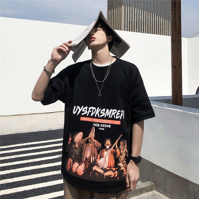 [HÀNG CÓ SẴN] ÁO THUN NAM CỔ TRÒN XANH ĐEN - Áo ngắn tay không cổ