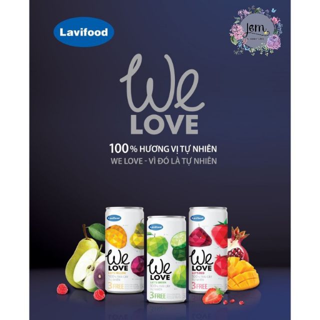 ️Hạn sd 7/2021 We Love là một trong những dòng nước ép trái cây tự nhiên thuộc chuỗi thương hiệu “We” của Lavifood, bên cạnh dòng nước ép trái cây khác như We Real, We Lavi. Xuất phát từ các loại trái cây tươi từ vườn trồng của nông dân, được kiểm tra chặt chẽ trong suốt quá trình canh tác, We Love là nước ép trái cây tự nhiên, không thêm đường, không chất bảo quản và không màu nhân tạo; được sản xuất bằng công nghệ hiện đại, tạo nên hương vị tươi, nguyên chất. Đơn vị tính: block 12 lon