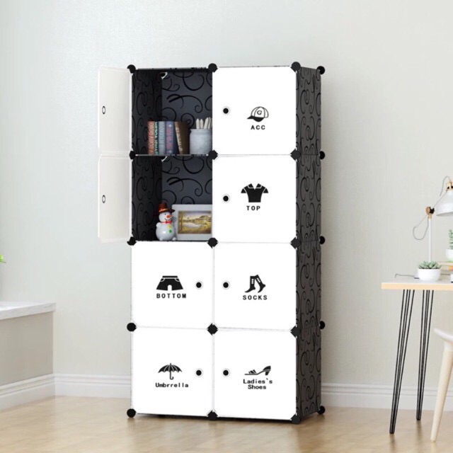 HÀNG LOẠI 1 BẢO HÀNH 2 NĂM - CÓ SẴN - TỦ NHỰA GHÉP 8 NGĂN ( CỬA HÌNH QUẦN ÁO, THÂN ĐEN )