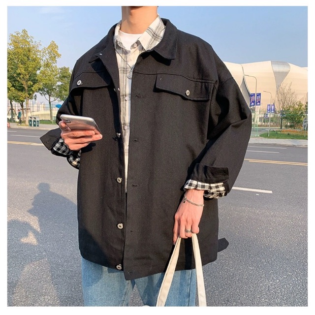 (HÀNG ORDER) ÁO KHOÁC NAM KAKI ĐEN PHỐI TÚI FORM RỘNG VẢI DÀY HÀNG NHẬP KHẨU