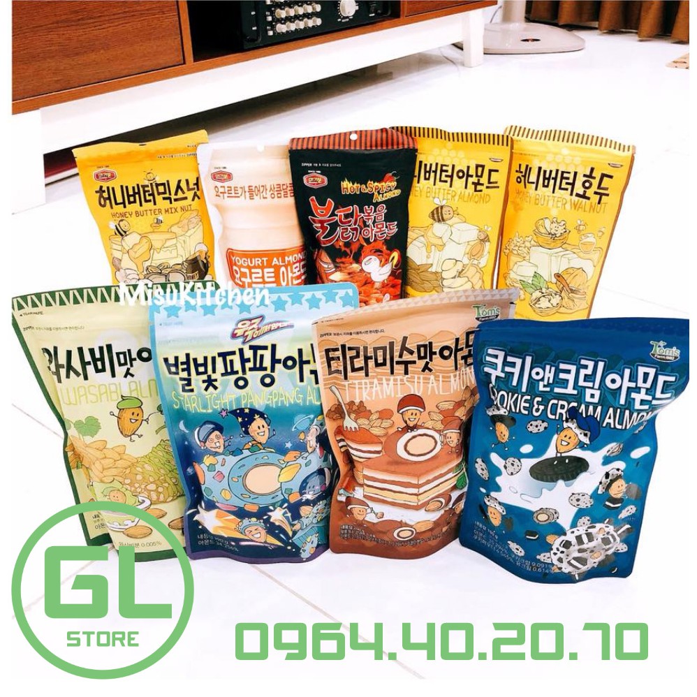 ️HSD 2020 Xuất xứ: Hàn Quốc. Hãng: Tom Farm --- Hạnh nhân tẩm Tom's Farm về lại 6 vị tuyệt ngon, đặc biệt có cả 3 vị MỚI NHẤT siêu hiếm hàng, rất nhiều chuyến rồi mới gom được - hàng xách tay Hàn Quốc ??. ___ ➥ Loại hạt tẩm best-seller được ưa chuộng nhất tại Hàn, đã bao năm vẫn chưa có đối thủ nào soán ngôi được ạ. Siêu hot! Và đảm bảo hiện tại Misu là nơi có nhiều loại hạt tẩm Hàn nhất, với giá SỈ LẺ tốt nhất thị trường ??. ___ ➥ Ngoài việc chứa những thành phần quý như carbohydrate, chất béo, chất xơ, protein, vitamin, chất khoáng, hạnh nhân còn là nguồn năng lượng tuyệt vời cho cơ thể. Chỉ với 25g hạt hạnh nhân, bạn đã có 70% vitamin E cần thiết mỗi ngày. ___ ➥ Hạnh nhân Tom's Farm được ưa chuộng vì hạt bùi béo chất lượng, quyện cùng sốt tẩm đậm vị ngon vô cùng. Đã ăn là chỉ có nghiện thôi ạ! #Shop hiện có 6 loại sau: ➡️ Hạnh nhân tẩm bơ mật ong 200g ➡️ Tẩm mù tạt wasabi 210g ➡️ Tẩm ớt siêu cay 210g ➡️ MỚI: Hạnh nhân tẩm lớp bánh cookie dày 190g ➡️ MỚI: Tẩm lớp bánh tiramisu siêu dày và thơm béo 200g ➡️ MỚI: Tẩm kẹo nổ bọc bên ngoài cực ngon và lạ miệng. Nhai hết lớp kẹo nổ bóc bóc sẽ đến hạnh nhân - 190g ??. Cam kết của GL Store: - Khách hàng được đổi trả trong vòng 7 ngày nếu như sai/thiếu hàng (yêu cầu khách có video khui hàng) mà 2 bên đã có thỏa thuận trước. - Cam kết bồi thường gấp đôi đơn hàng nếu như phát hiện sản phẩm không chính hãng / kém chất lượng / hết date. - Niềm tin tưởng của khách hàng là động lực thúc đẩy sự phát triển của GL Store trong tương lai. Mọi người vui lòng để lại thông tin,sđt trong phần chat box để nhân viên shop liên hệ chăm sóc tốt hơn nhé!