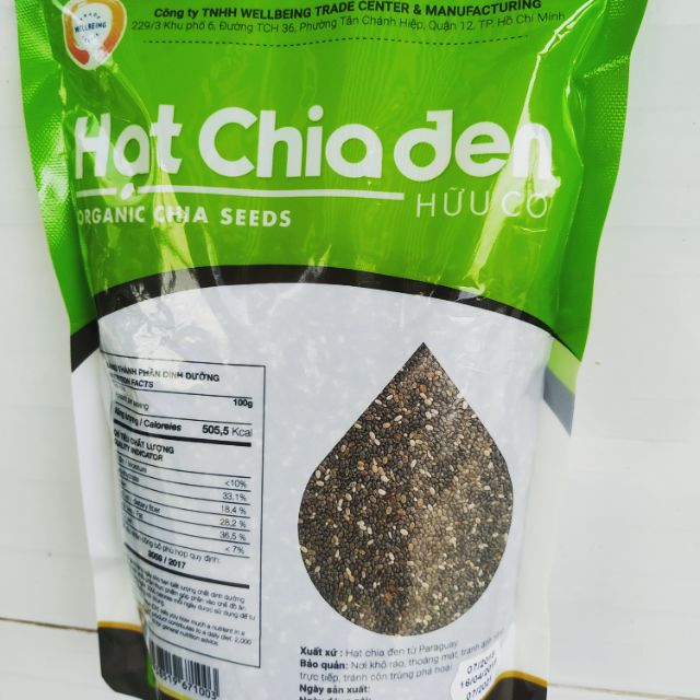 ️Hạt chia đen Hạt chia hữu cơ Chia seed organic +++++++++ ➥ Túi 500g ➥ Xuất xứ từ Paraguay. ➥ Hạn sử dụng đến 7/2021. ➥ Nhập khẩu, đóng gói và phân phối bởi công ty TNHH Wellbeing Trade Center & Manufacturing. - Quận 12 - TP HCM. ----------------- Đặc tính: hạt chia thường dẹt, hình bầu dục, nhỏ như đầu tăm, nở ra trong nước, nở nhiều và có lớp nhầy bao quanh như hạt é. Cách dùng: dùng với các loại nước ép trái cây, sữa, bánh, thêm vào nước bí đao, nước nha đam uống rất ngon và bổ dưỡng. +++ hạt chia có đặc tính trương nở nên không dùng quá nhiều, sẽ có cảm giác khát nước hoặc đầy bụng, no bụng. ----------- Hạt chia/chia seed là hạt của cây Salvia hispanica. Nguồn gốc từ các nước Trung Mỹ hoặc Nam Mỹ. Hạt chia chưa nhiều dưỡng chất quý: phốt pho, canxi, magie, protein, lipid, omega 3/6/9, chất xơ....