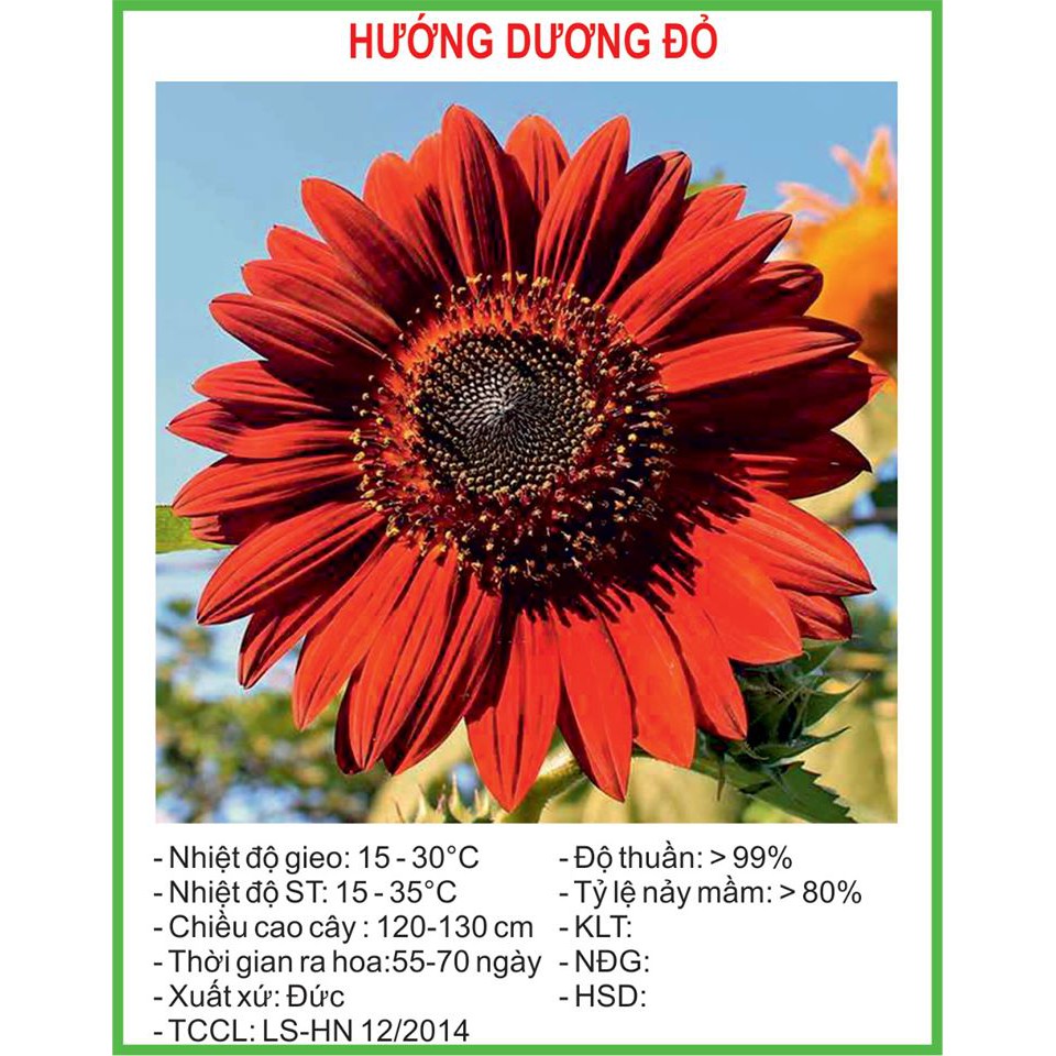 ️* GIỚI THIỆU SẢN PHẨM - Số hạt/gói: 30 Hạt - Tỷ lệ nẩy mầm: >80% - Mùa Vụ: quanh năm - Nhiệt độ gieo: 15 - 30 độ - Nhiệt độ ST: 15 - 35 độ - Thời gian thu hoạch: 80-90 ngày * GIỚI THIỆU VỀ SHOP - Shop mình chuyên nhập khẩu trực tiếp các loại hạt giống rau, hoa, quả từ Đức - Hàng của shop bán ra đã được đăng ký nhập khẩu với đầy đủ giấy tờ kê khai hải quan, C/O, CQ - Các mặt hàng của shop bán ra đã được cấp phép bởi Bộ Nông Nghiệp, tuân thủ tuyệt đối các tiêu chuẩn ATVS, TCCL của Bộ Nông Nghiệp - Để đảm bảo uy tín và chất lượng nguồn hàng, shop hiện tại KHÔNG TUYỂN CTV ( nếu phát hiện trường hợp shop hoặc cá nhân nào sử dụng hình ảnh, sản phẩm của shop mong mọi người report tới shopee hoặc trực tiếp cho bên mình ) - Để liên hệ tư vấn thêm về sản phẩm dịch vụ quý khách vui lòng gọi : 0932.576.555 ---------------------------------------------- * HƯỚNG DẪN TRỒNG ĐƠN GIẢN 1. Chuẩn bị vật dụng - chất trồng: -Chậu nhỏ (hoặc chậu to nếu sau này không muốn thay chậu nữa) hoặc khay ươm nếu gieo số lượng nhiều. Dù bạn dự tính trồng thẳng trong chậu hoặc sẽ chuyển xuống đất trồng thì cũng nên uơm hạt trong chậu trước vì dễ quản lí đô ẩm, sâu bệnh, dinh dưỡng... -Thuốc trừ nấm. -Đất sạch giàu dinh dưỡng + vỏ trấu hoặc xơ dừa, mụn xơ dừa, (đã hoai mục), phân gà, phân bò... Thông thường tỷ lệ phổ biến như sau: Đất sạch - vỏ trấu, xơ dừa, phân gà, bò = 7 : 3 - Hoặc có thể dùng đất sạch đóng bao sẵn – mua ở cửa hàng 2. Tiến hành gieo hạt:. -Chất trồng sau khi trộn đều, chúng ta cho vào chậu hoặc khay uơm. -Phun thuốc trừ nấm lên mặt chất trồng (bước này khá quan trọng), tốt nhất phun liên tục 2-3 lần để thuốc thấm xuống sâu hơn. (nếu mua đất sạch thì không cần) -Ngâm hạt:Ngâm hạt trong nước 3 sôi 7 lạnh trong 5-7h -Sau khi ngâm hạt dùng giấy ướt (có thể dùng giấy vệ sinh gấp lại thành nhiều lớp) để ủ hạt (cho hạt vào giấy, và gấp đôi chúng lại), sau đó cho vào 1 hộp nhỏ, rồi đậy kín lại và cho vào chỗ mát mẻ (luôn để giấy ở trạng thái ẩm cao). Để như vậy đến khi hạt nhú mầm xanh(tùy hạt mà từ 5-15 ngày) thì mang gieo ra đất đã được làm tơi xốp – nhớ làm nhẹ tay kẻo gẫy mầm nhé! (thường áp dụng cho các loại hạt yêu cầu kĩ thuật xíu:hạt giống hoa các loại, dâu tây, nho, hồng ri ba tư, nho gỗ, tử đằng... 3. Chăm sóc sau khi gieo hạt: -Nhiệt độ:tùy loại mà nhiệt độ để nẩy mầm dao động từ khoảng 20-30oC. Không cần quá chú trọng đến vấn đề này vì chỉ cần che lưới là ổn rồi. -Độ ẩm của đất trồng:luôn đảm bảo độ ẩm cho đất, không được để đất bị khô hoặc quá ẩm -Đặt chậu hoặc khay uơm ở nơi có ánh sáng khuyếch tán (che lưới lan màu đen loại 50%), vì hạt cần ánh sáng để nẩy mầm, nhưng nếu cường độ quá mạnh sẽ đốt cháy hạt và làm khô chất trồng nhanh chóng -Thay chậu hoặc chuyển vào đất trồng: khi cây con đã lớn (thân đủ cứng cáp, rễ mạnh...), chúng ta có thể chuyển qua chậu to hơn hoặc chuyển xuống đất trồng trực tiếp. Nếu trước đó đã gieo hạt trong chậu to thì không cần sang chậu.