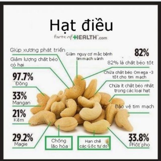 ️[HÌNH THẬT] Lấy “Mã giảm giá” tại: https://shopee.vn/m/ma-giam-gia → Áp mã cho đơn hàng từ 150K (khách ở ĐỒNG NAI), 250K (đối với khách hàng ở các tỉnh/thành phố khác) để được hỗ trợ phí ship lên đến 40k nhé! Hạt điều rang muối - GÓI 500gr (hạt to - giòn, bùi, thơm ngon - còn vỏ lụa) - Quy cách đóng gói: 500gr /gói hút chân không để các bạn bảo quản hạt được lâu và luôn giữ được vị ngon. Đây là Hạt điều rang muối (Hạt to - giòn, bùi, thơm ngon - còn vỏ lụa) - Hạt điều rang mới - giòn ngon. - Xuất xứ: Bình Phước - HSD: 6 tháng ĐỊA CHỈ SHOP: Thống Nhất - Đồng Nai Công dụng của Hạt điều: - Ngăn ngừa ung thư. - Thúc đẩy sức khỏe tim mạch. - Tốt cho tóc và da. - Giúp xương chắc khỏe. - Hạ huyết áp. Giúp thần kinh, các mạch máu và cơ bắp cùng thư giãn. - Ngăn chặn sỏi mật. - Giúp giảm cân. THƠM