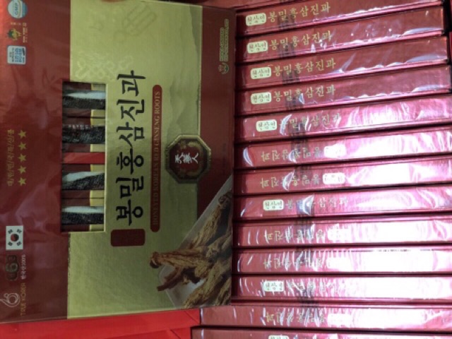 ️Thành phần: Hồng sâm hàn quốc chiếm 60,5% , đường hoa quả fructose, mật ong hàn quốc, chiết xuất hồng sâm hàn quốc (thành phần rắn hơn 60%, hàm lượng saponin ginsenoside hơn 70mg/g) Công dụng hồng sâm Hàn Quốc 6 năm tuổi nguyên củ tẩm mật ong : - Hồng Sâm là thực phẩm chức năng giúp tăng cường bồi bổ sức khỏe, kéo dài tuổi thọ và trí lực, tăng khả năng làm việc, giúp đầu óc minh mẫn, sảng khóai, nâng cao hiệu quả năng lực làm việc, cải thiện tình trạng mất ngủ, tăng khả năng ghi nhớ và năng lực phân tích - Bồi bổ toàn diện, tăng cường sinh lực, chống lão hóa, tiểu đường, giảm cholesterol, điều hòa huyết áp, chống xơ cứng động mạch, chống stress, tăng sức đề kháng, tốt cho gan thận và tăng khả năng miễn nhiễm... Hướng dẫn sử dụng hồng sâm Hàn Quốc 6 năm tuổi nguyên củ tẩm mật ong: Một ngày sử dụng 2 đến 3 lần hồng sâm tẩm mật ong cắn trực tiếp hoặc thái nhỏ lát bảo quản lạnh để ngậm ăn trực tiếp. Bảo quản: Bảo quản nơi khô ráo thoáng mát tránh ánh sáng trực tiếp từ mặt trời, mở ra dùng nên bảo quản lạnh Xuất xứ: Hàn quốc - Korea ginseng bio-