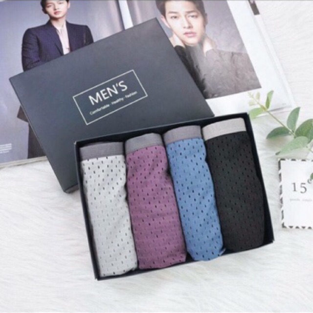 ️quần sịp đùi nam thông hơi mẫu mới nhất. -hộp có sẵn 4 màu như hình. -chất liệu lụa mát,siêu nhẹ,tạo cảm giác dễ chịu cho người dùng, -thiết kế dáng đùi lịch sự,kín đáo, ôm sát body,cùng những lỗ thông hơi nhỏ,tạo nên vẻ nam tính, -cạp nhỏ mặc nhẹ nhàng,không gây cảm giác khó chịu lên da, -hộp được thiết kế lịch sự có thể làm quà tặng. Size -size L : 50-60kg -size xl :60-70kg -size xxl:70-80kg #sịp #sipnam #sipnamthonghoi