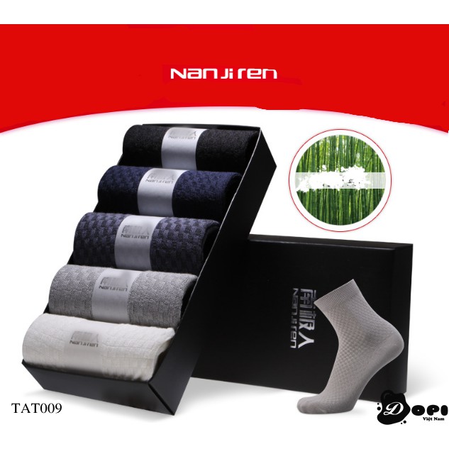 ️***Click vào XEM SHOP để xem nhiều sản phẩm khác của shop và video hướng dẫn lấy mã miễn phí vận chuyển nhé!*** Hộp 5 đôi tất cổ dài, vớ cổ dài nam khử mùi, chống hôi chân Nanjiren cao cấp - Chất liệu: được sản xuất từ sợi tre thiên nhiên. Ngoài ra tất có thêm sợi spandex giúp tất có độ đàn hồi cao - Tất luôn mềm mại, thấm hút mồ hôi tốt, tạo cảm mát thoải mái, công nghệ NANO bạc thẩm thấu vào từng sợi chống mùi hôi chân. - Xuất sứ: Trung Quốc - 5 đôi tất đựng trong hộp đẹp mắt, lịch sự, sang trọng - Họa tiết gân mang lại sự tươi mới - Mọi thắc mắc xin vui lòng liên hệ fanpage: Dopi Việt Nam - Hotline: 0868828659 #tất #cổ #dài #vớ #dài #cổ #tat #vo #tatdaico #tatcodai #vodaico #vocodai #tất