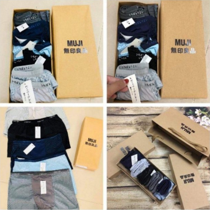 ️Hàng đẹp ngất ngây ah! Hộp 5 quần lót cực sang này sẽ là món quà vô cùng ý nghĩa cho chồng/bạn trai hoặc em trai của bạn. Hộp 5 quần lót muji xuất Nhật đẹp Ưu điểm sản phẩm - Set 5 quần lót đùi nam Muji – Nhật với chất liệu mềm mại, bền đẹp, thoáng mát, đàn hồi, giúp co giãn cực tốt, mang lại cảm giác thoải mái, không gây ảnh hưởng đến sức khỏe. - Quần có độ thấm hút mồ hôi cao, tạo sự thoáng mát với các lỗ thông hơi trên bề mặt - Kiểu dáng ôm sát body, thời trang, trẻ trung, thích hợp khi vận động, chơi thể thao cho các bạn trẻ năng động. - Sản phẩm có nhiều màu sắc nam tính tạo nên sự mạnh mẽ, hấp dẫn và lôi cuốn. size L: 50-55kg, mỗi size tăng 5kg nhé khách! #sipdui #sip #quansip #quanlotnam #sipduinam #hopquanlot