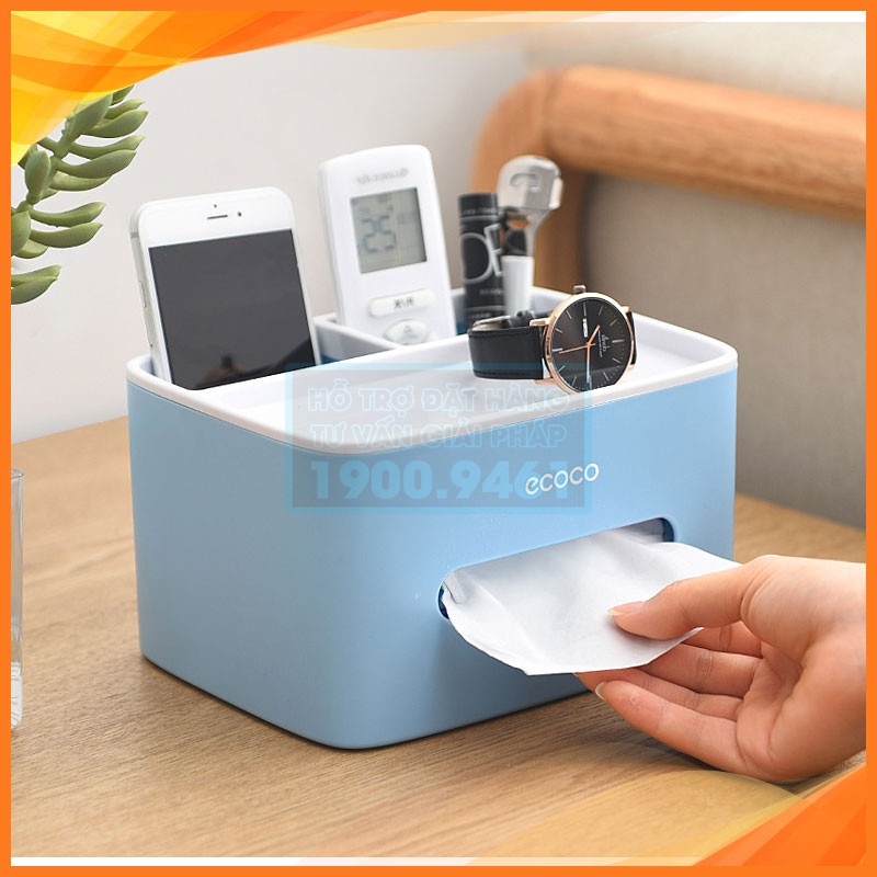 ️Thông tin chi tiết: – Thương hiệu: Ecoco – Chất liệu: Nhựa PP – Kích thước: 20.5 * 11.5 * 15.5cm (dài x rộng x cao) – Màu sắc: Xanh biển – Trọng lượng: 425g Ưu điểm: – Khay dùng để đựng điện thoại, điều khiển tivi, quạt, điều hòa hoặc cắm bút giúp căn phòng của bạn luôn ngăn nắp, gọn gàng, sạch sẽ. Bạn sẽ có thói quen bỏ các đồ này vào 1 chỗ nên sẽ dễ dàng tìm thấy khi cần mà không phải mất thời gian nữa. – Thiết kế khung đựng giấy tiện dụng, dễ dàng lấy giấy chỉ với một tay. – Màu sắc trẻ trung, hiện đại với gam màu pastel thời trang.