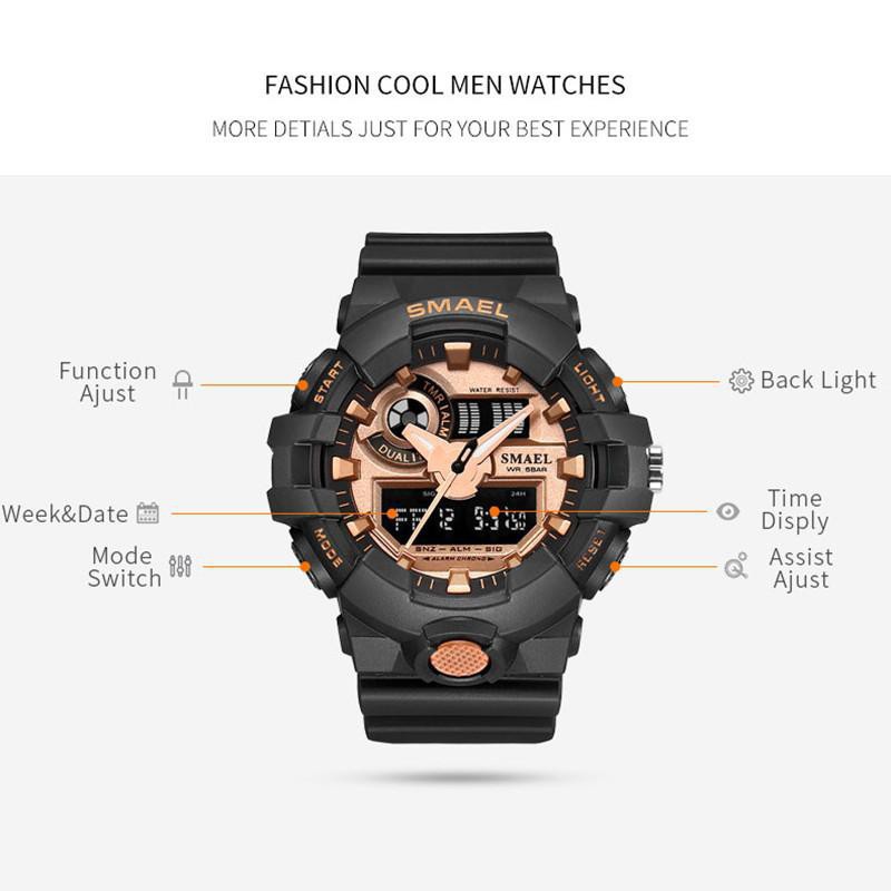 ️[ NEW 2019] Đồng Hồ Nam Quân Đội Chính Hãng Siêu Bền Chống Nước (ẢNH THẬT + VIDEO) -HaiTrieuWatchStore HẢI TRIỀU WATCH STORE : Đồng hồ cho các ae mê thể thao -Đồng hồ SMAEL ☑ Chất liệu mặt : Kính Hardlex Crystal(*) được ép trong khung thép không gỉ ☑ Chất liệu dây đeo : Cao su tự nhiên, không ngứa và đau tay ☑ Chống nước : 50 M ☑ Độ dày : 10 MM ☑ Đường kính mặt : 50 MM ☑ Độ rộng dây đeo : 21 MM ➥ Bảo hành : 6 tháng (tính từ ngày mua hàng) ➥ Quà tặng : Hộp, pin đồng hồ kèm thẻ bảo hành và mã giảm giá Size : 50mm Độ dày : 18mm Dây nhựa cao cấp Độ chống nước : 5ATM. Hiển thị 24h- ngày tháng- báo thức- đèn- Chronograph . ☑ Thiết kế mạnh mẽ đầy bản lĩnh của Đàn ông ☑ Chống chọi với mọi khắc nghiệt của thời tiết kể cả đóng băng. ☑ Thích hợp cho các chuyến thám hiểm dành cho quân đội MỸ ☑ Đẳng cấp thể hiện trước đám đông ☑ Tính năng bấm giờ thể thao ☑ Cơ chế hoạt động 2 máy với máy NHẬT nhập khẩu 100% ✅ 7 ngày miễn phí đổi trả - Hoàn tiền ngay 100% (với bất kể mọi lý do) ✅ Bảo hành miễn phí 01 năm ✅ Lỗi 1 đổi 1 trong 1 tháng ☑ Chống nước tuyệt đối ở độ sâu dưới 50m ☑ Phát quang trong đêm ☑ Hẹn giờ báo thức, nhắc lịch làm việc HẢI T TRIỀU WATCH STORE CAM KÉT ✅ Giao hàng nhanh tại nhà - Chỉ thanh toán sau khi nhận hàng ✅ Cam kết 100% video là đúng sự thật, nếu không đúng chúng tôi sẽ bồi thường 200% XEM THÊM MẪU TẠI #DONGHOHAITRIEU.VN #haitrieuwatch # #donghochinhhang #donghocatinh #donghonamnu #chốngnước #đồnghồdw #chronograph # #đồnghồcơ #automatic #casio đồnghồnam #donghonam #dongho #đồnghồ #đồnghồgiárẻ #donghocaocap đồnghồthểthao #đồnghồđiệntử #donghonư