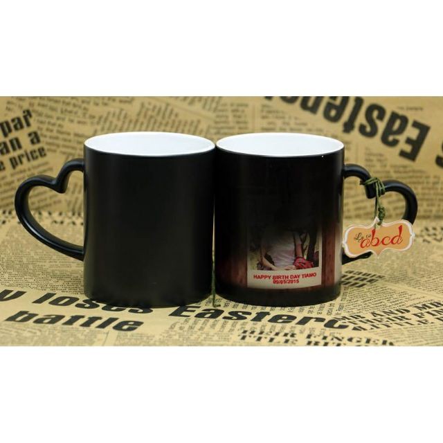 ️Ly huyền ảo in theo yêu cầu Nguyên lý hoạt động của ly huyền ảo : + Bình thường ly màu đen thui. + Khi chế nước nóng vào, hiện lên hình